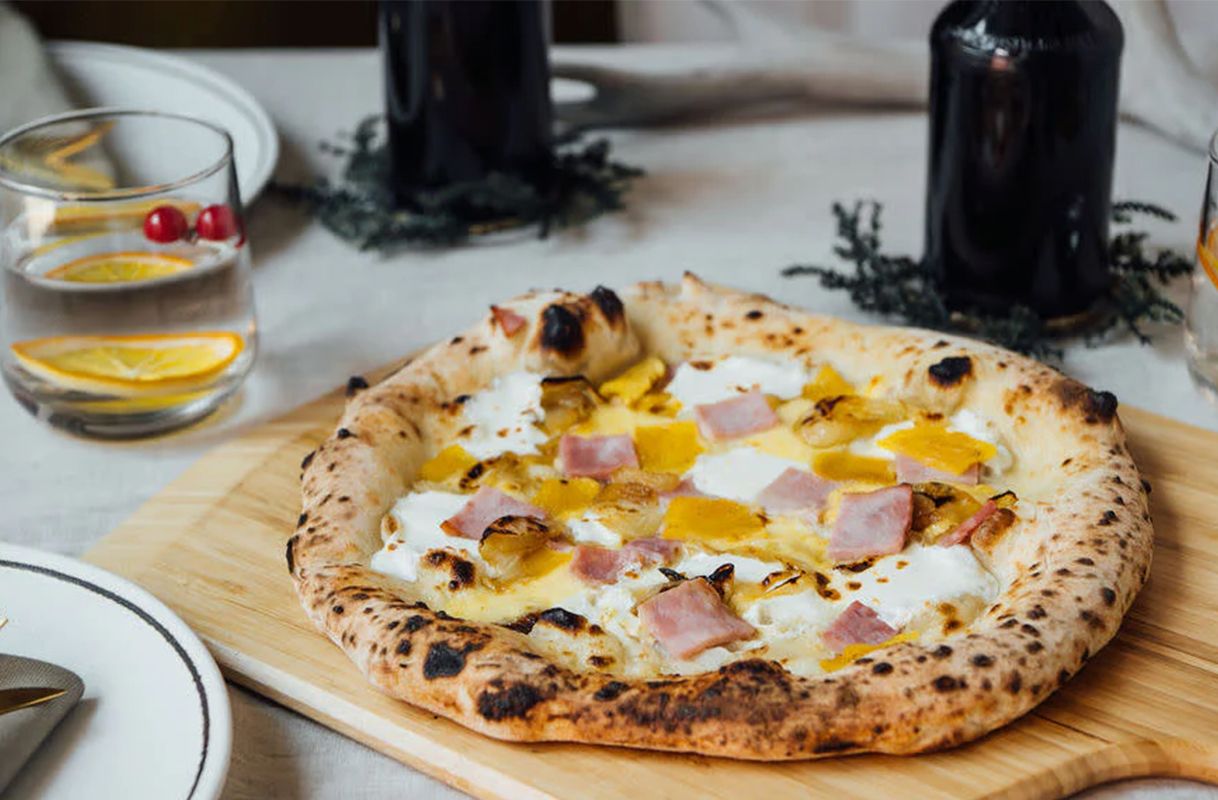 Wer es süß und salzig mag, ist mit dieser Pizza bedient, denn hier trifft glasierter Honigschinken auf gebratene Ananas. Die frische Ananas wird zusammen mit dem Schinken gebraten, wodurch die Frucht weniger süß, weicher und etwas salziger wird und die Mischung aus Crème fraîche, Mozzarella und Gouda ausgleicht. Dazu kommen gut geröstete Zwiebeln und die perfekte Pizza für Liebhaber des herzhaften Genusses ist fertig!