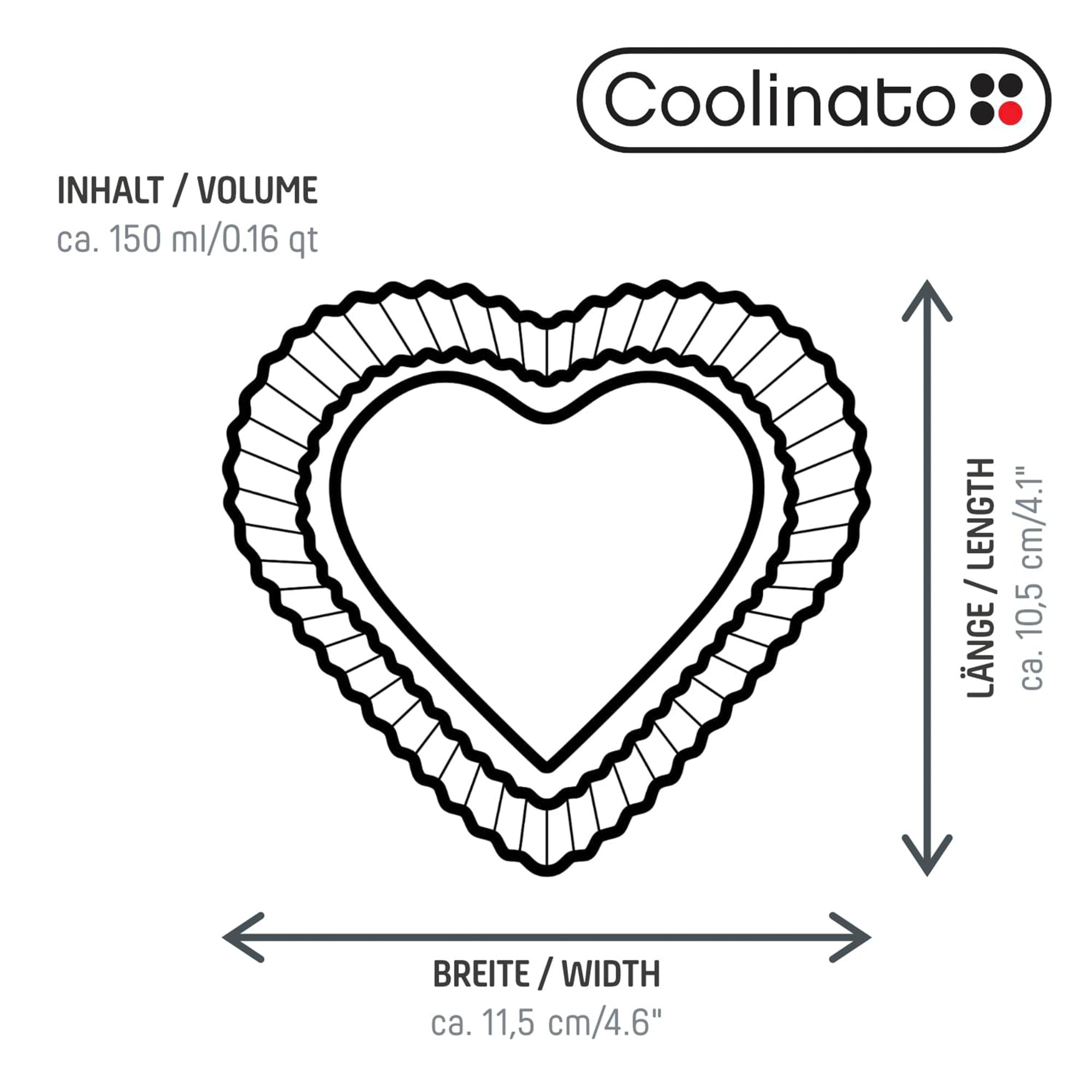 Auf die Form kommt's an! Deine Mini-Tartelettes haben mit diesem COOLINATO Set eine tolle Herzform – und stechen damit in jedem Büffett als etwas ganz Besonderes heraus! Ob als Appetit-Anreger auf deinem Esstisch zu Hause, für Picknicks oder Partys: Die Tartelettes kommen bei deinen Lieben und Gästen garantiert gut an.