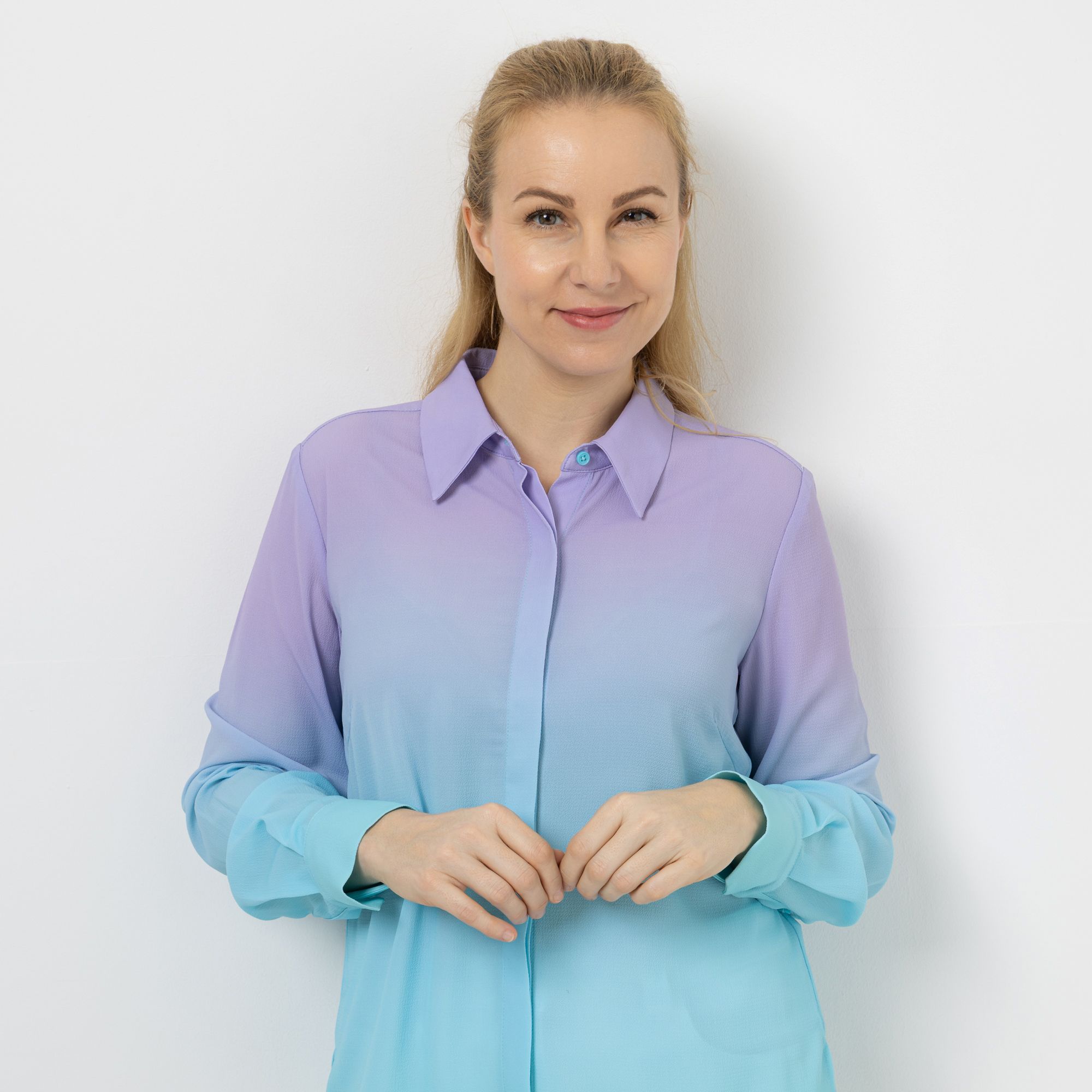 DAWID by Dawid Tomaszewski Bluse, Farbverlauf verdeckte Knopfleiste figurumspielend