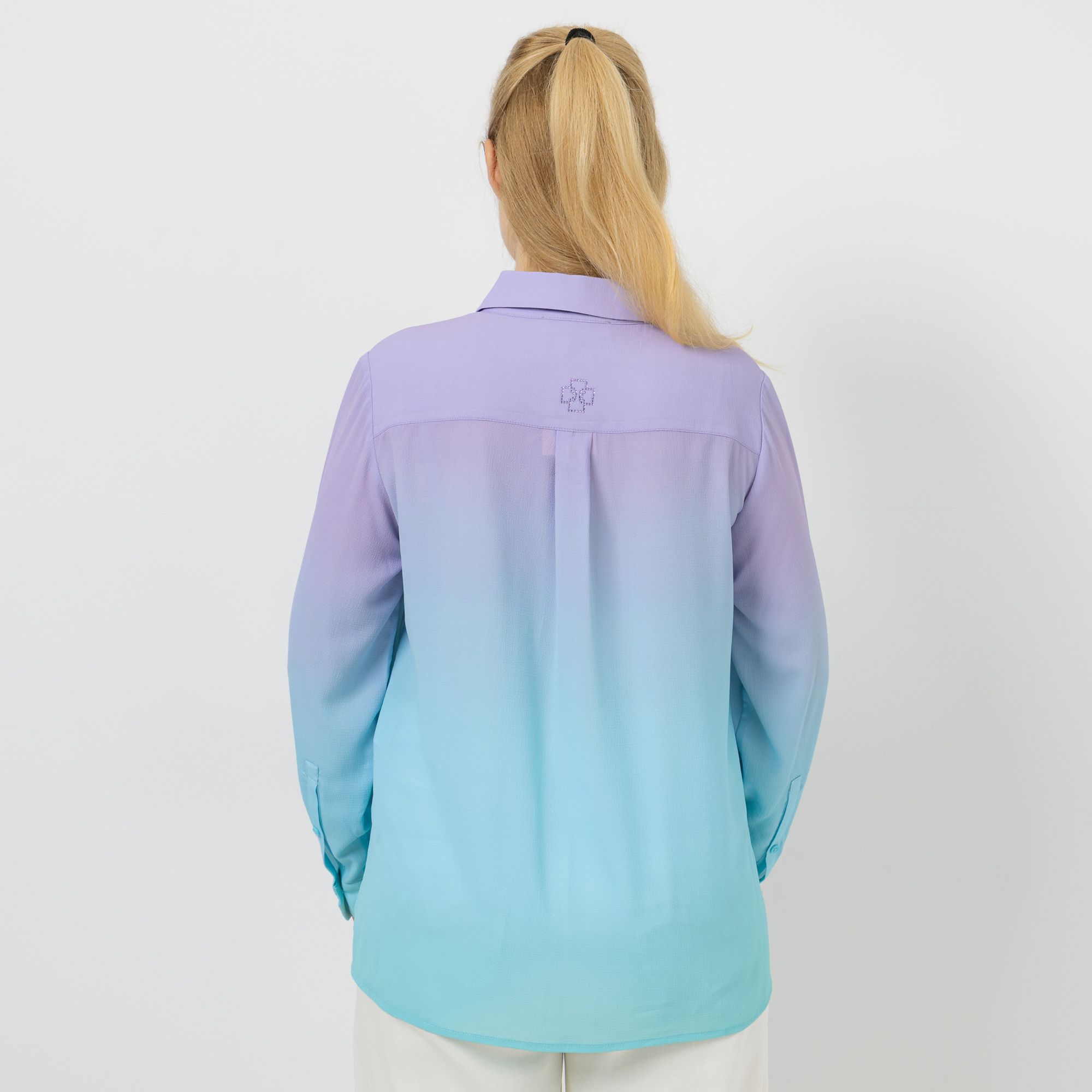 Mit der DAWID by Dawid Tomaszewski Bluse bringst du sanften Farbverlauf und dezentes Strass-Logo stilsicher in deinen Alltag.