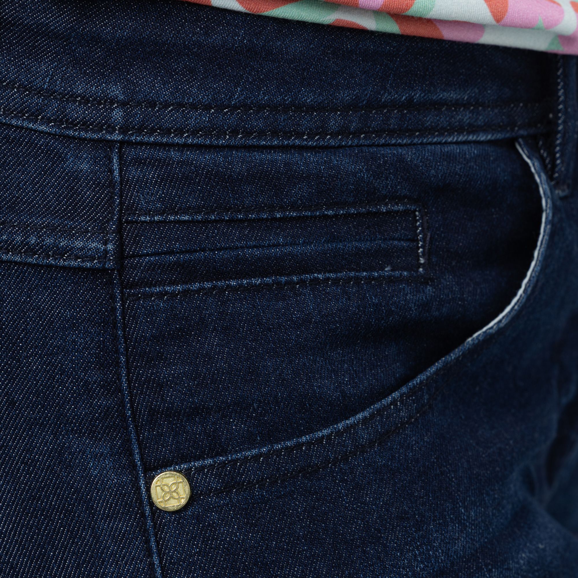 • beide Gesäßtaschen mit Stickerei und Zierniete