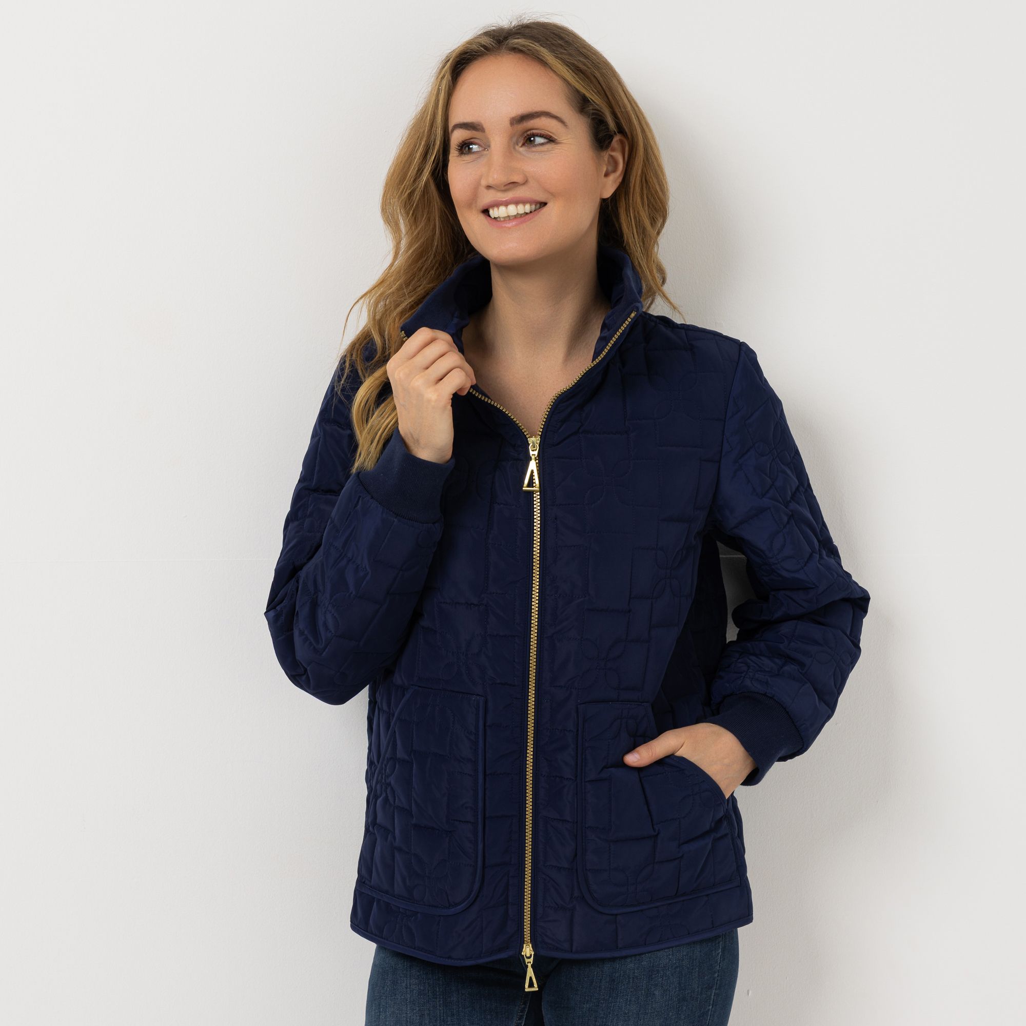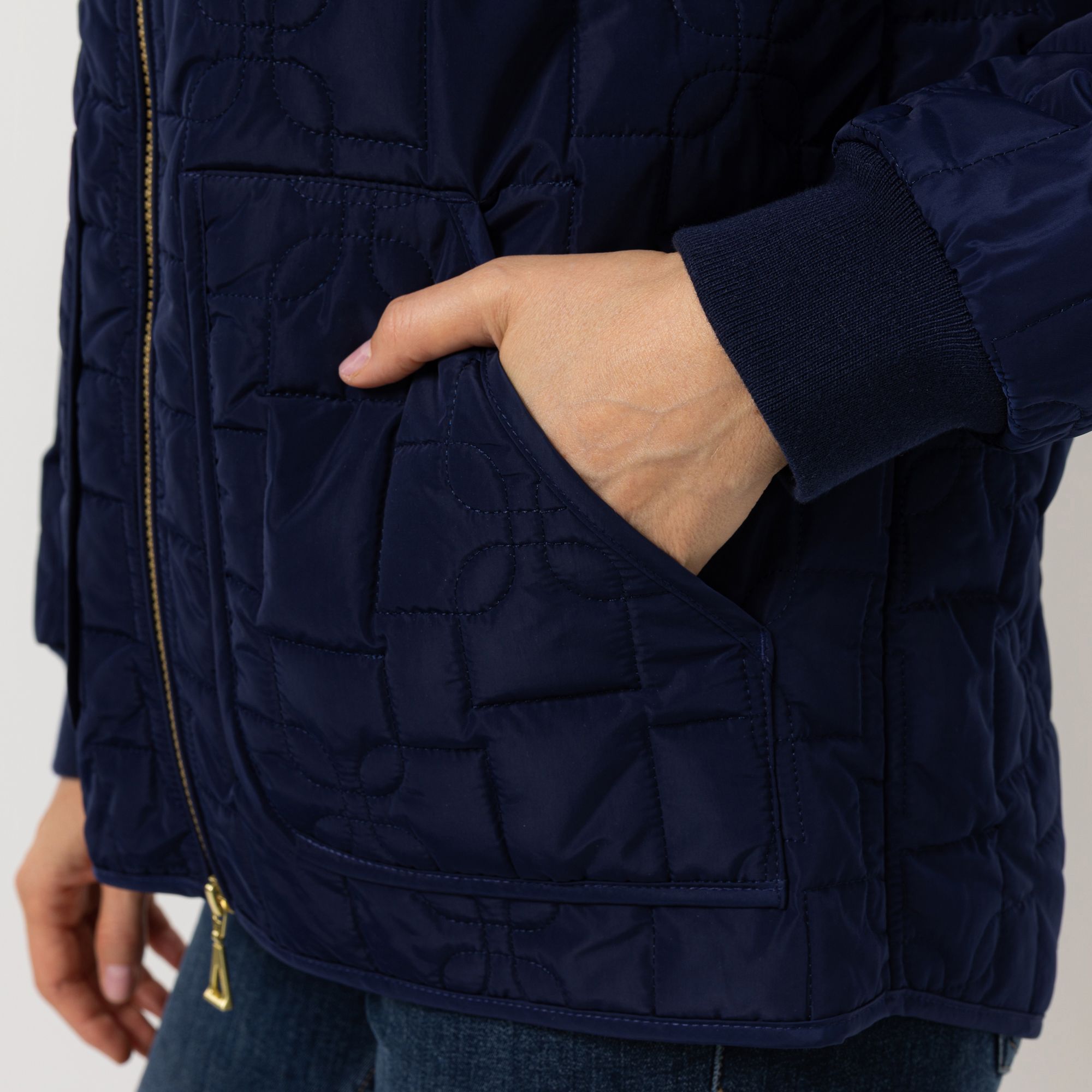 Wenn du es warm haben möchtest, aber es luftig magst: Die Steppjacke von DAWID by Dawid Tomaszewski vereint beides, denn sie hat einen hohen, halsfernen Stehkragen. Am Armabschluss und an der Kragenkante ist sie mit Strickbündchen ausgestattet.