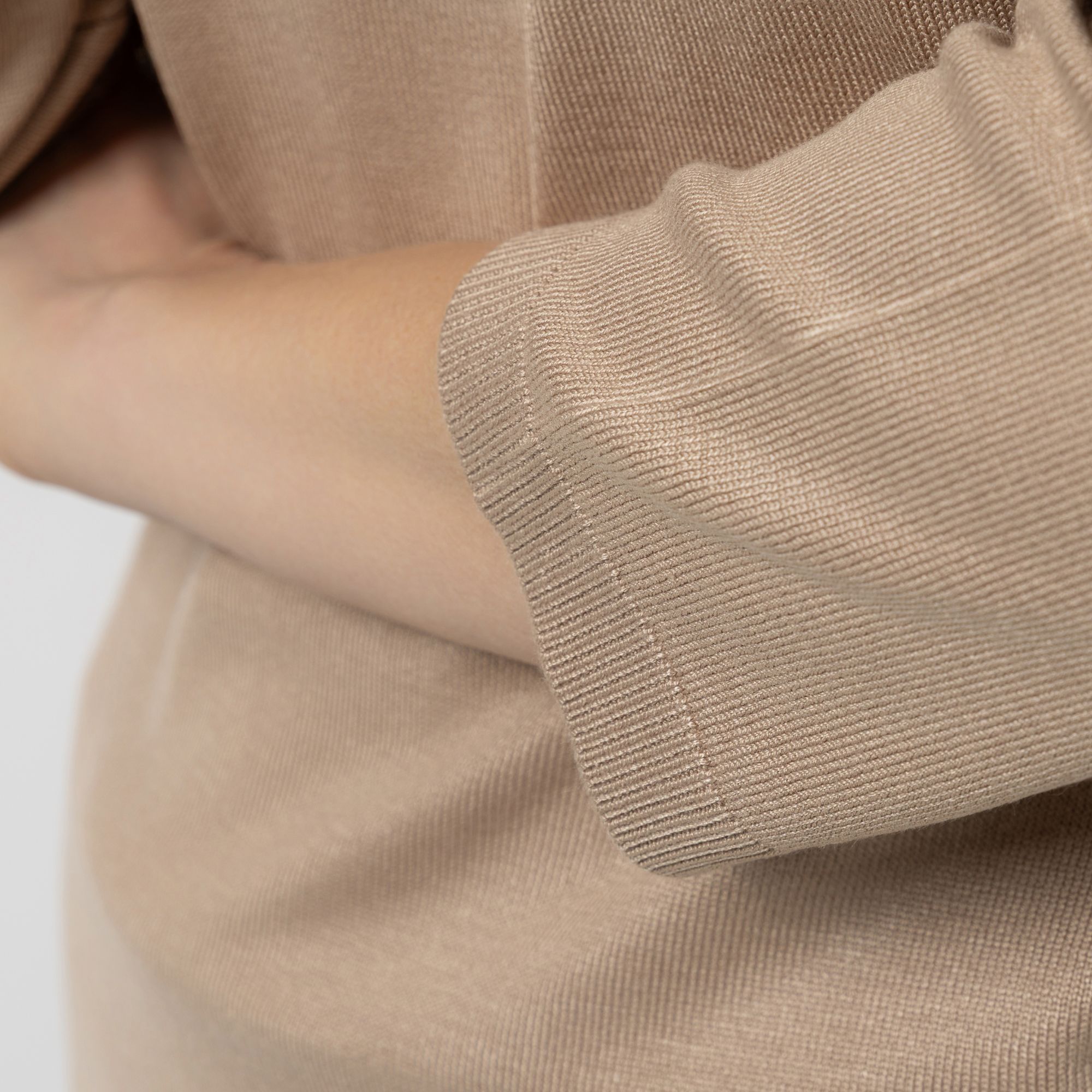 • schmaler Rippenbundabschluss an Ausschnitt