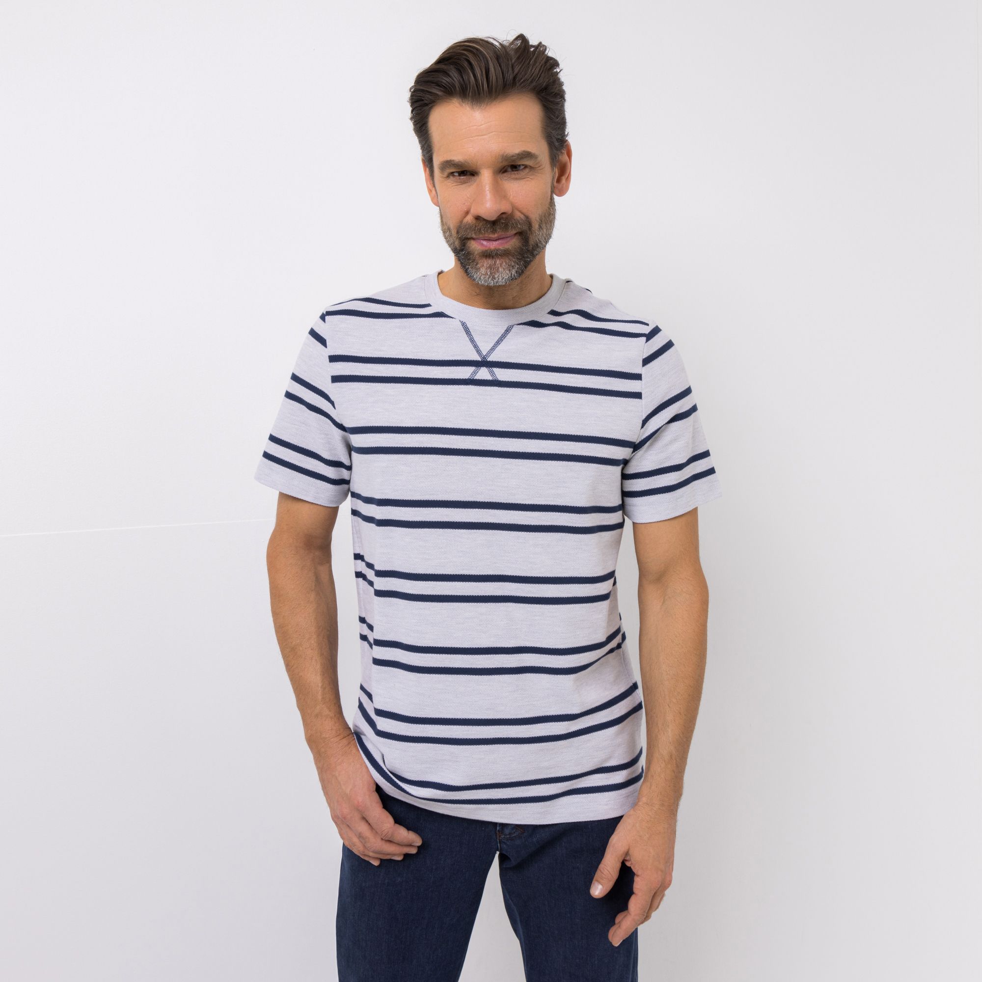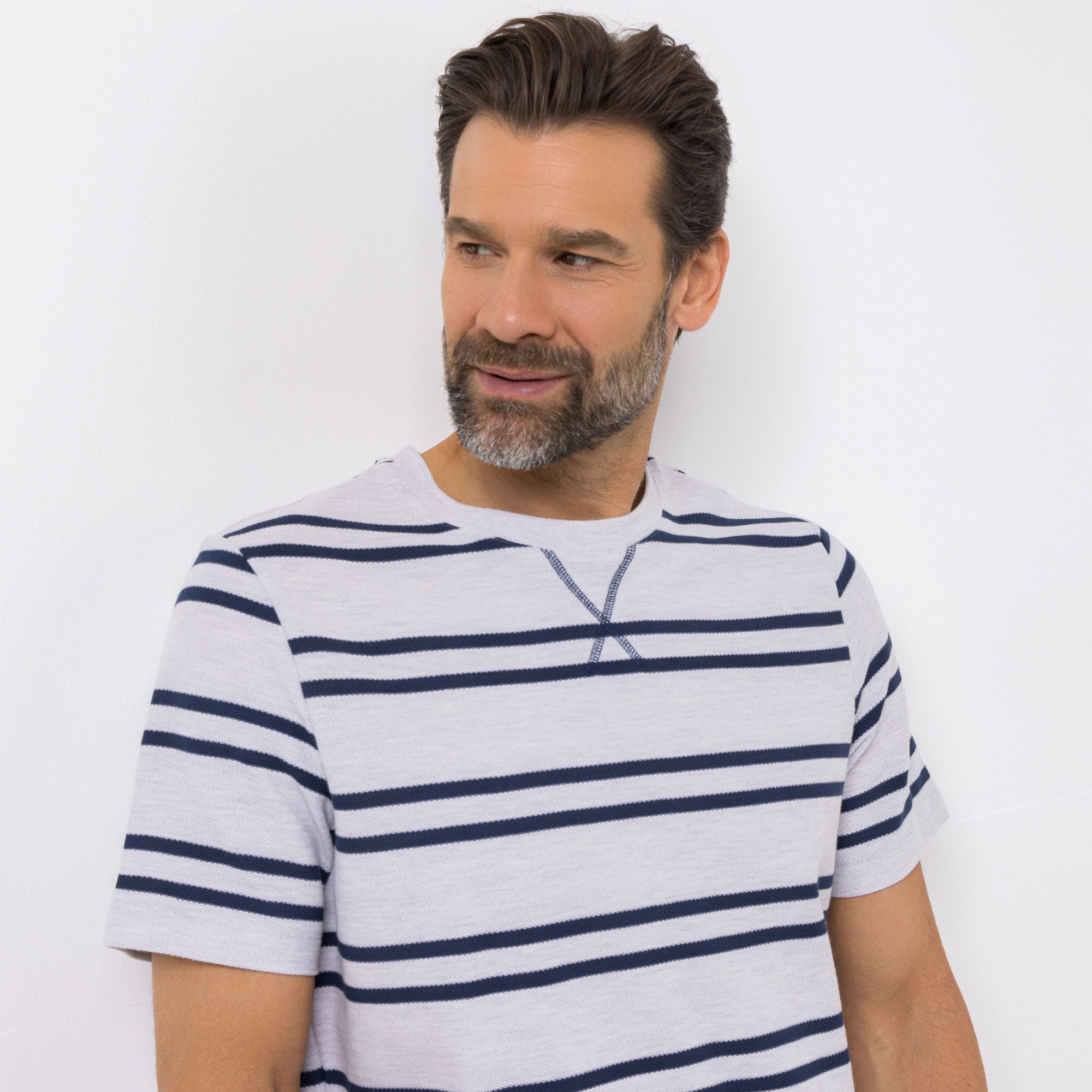 Basic für jeden Tag: Das grau-melierte DENIM & CO. Herren-Shirt aus Pikee hat einen runden Ausschnitt und halblange Ärmel.