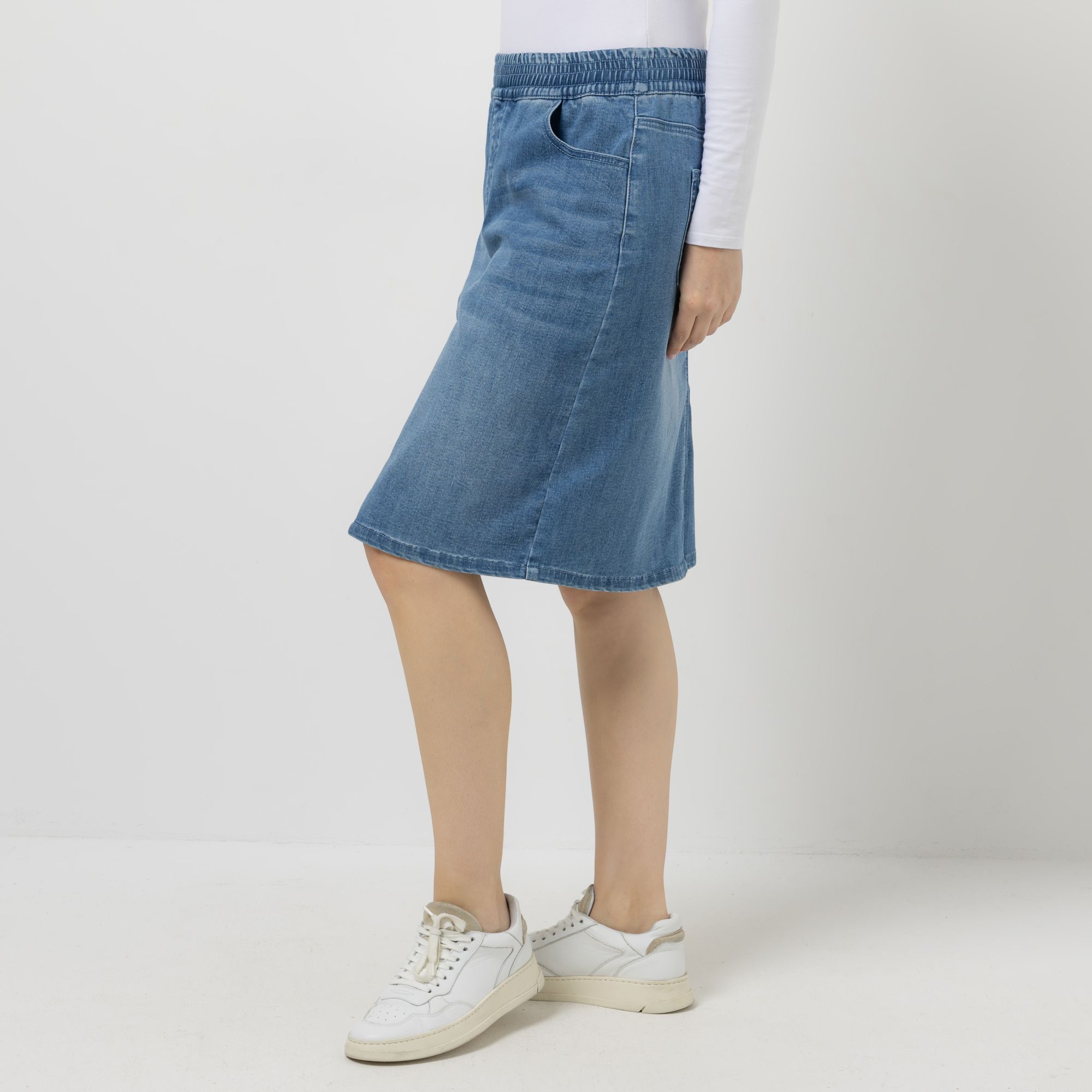 DENIM & CO. Jeansrock Rundumdehnbund Eingrifftaschen knieumspielend
