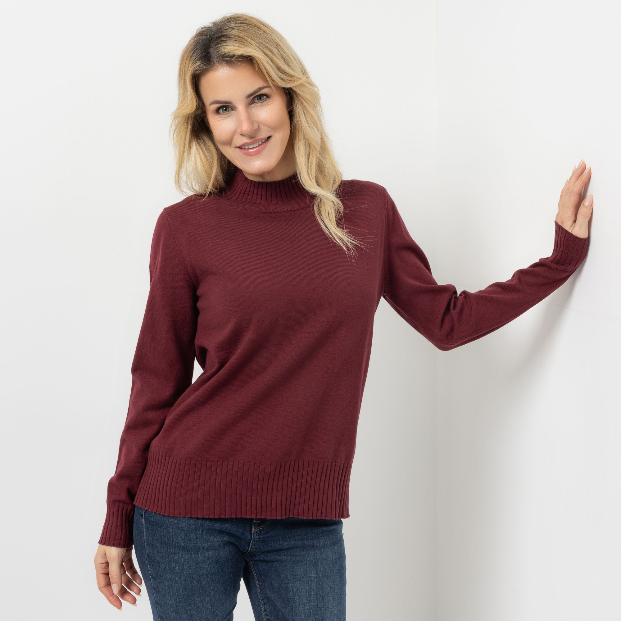 DENIM & CO. Pullover gerippter Stehkragen Rippenbundabschlüsse figurumspielend