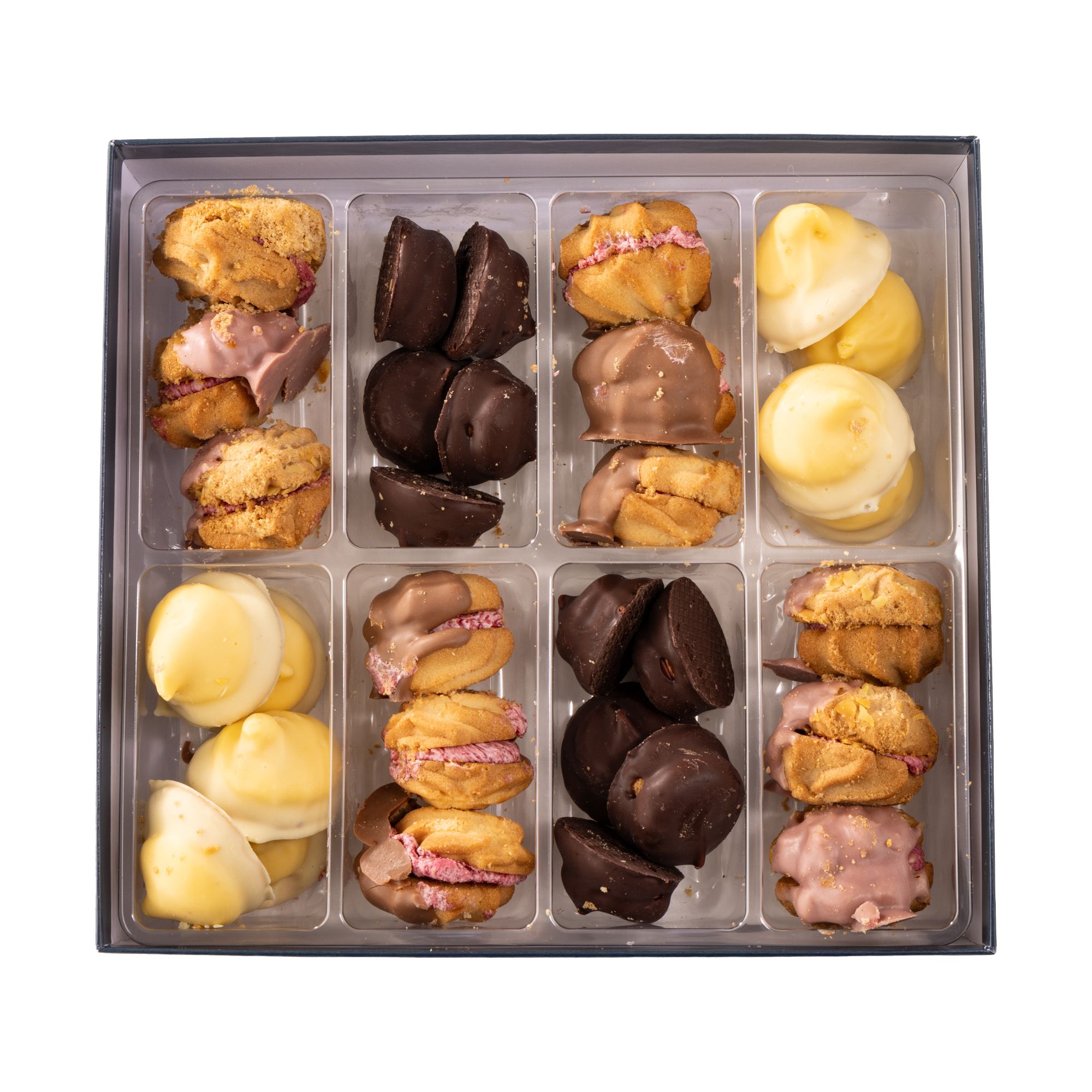 - Eierlikör-Trüffel (Butterkeks mit Ganache-Eierlikör-Creme, weiße Kuvertüre), 125 g