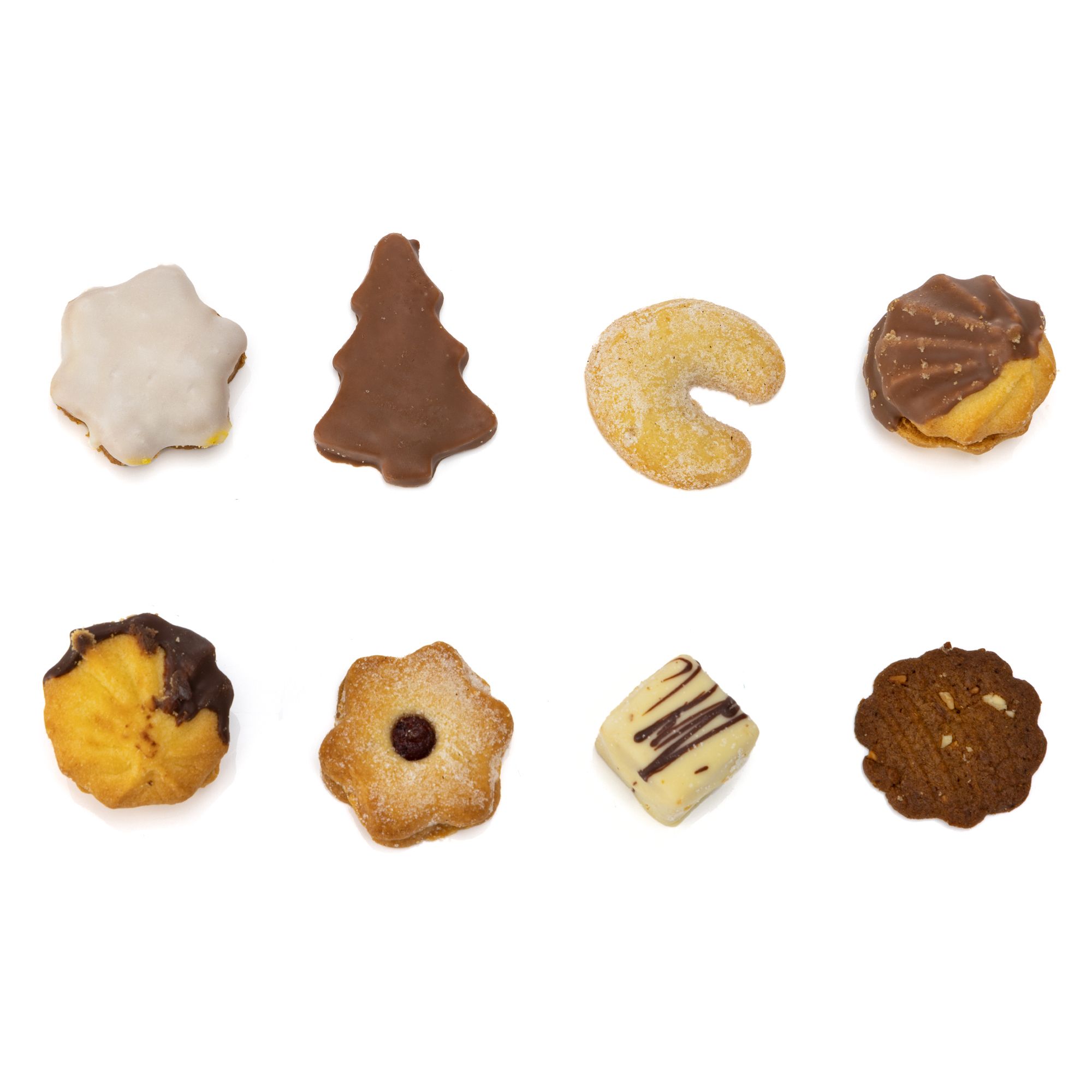- 8 verschiedene Gebäckspezialitäten in einem weihnachtlichen Schmuckkarton