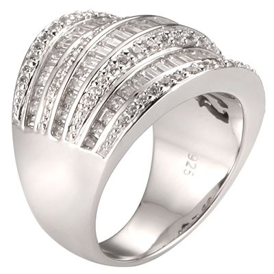 Ein funkelndes Feuerwerk an diamantenem Glitzer präsentiert sich mit diesem unwiderstehlichen Cocktail-Ring aus unserer DIAMONIQUE EPIPHANY Schmuckkollektion. 133 weiße Steine im Brillant- und Baguetteschliff, gehalten in Pavé- und Channelfassung, bilden ein königliches Ensemble.