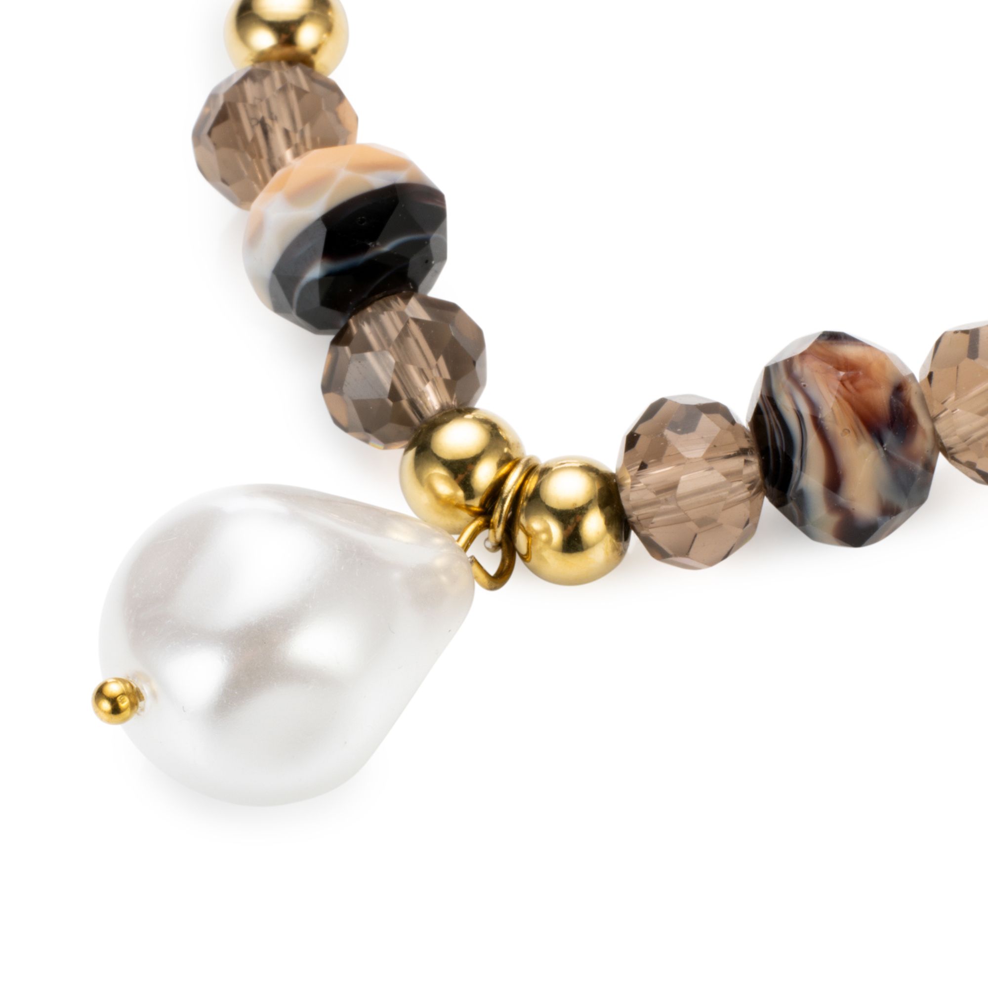 Ein verspieltes Design mit Glas-, Acryl- und Edelstahlbeads macht das flexible Armband von DINE 'N' DANCE zu einem charmanten Hingucker