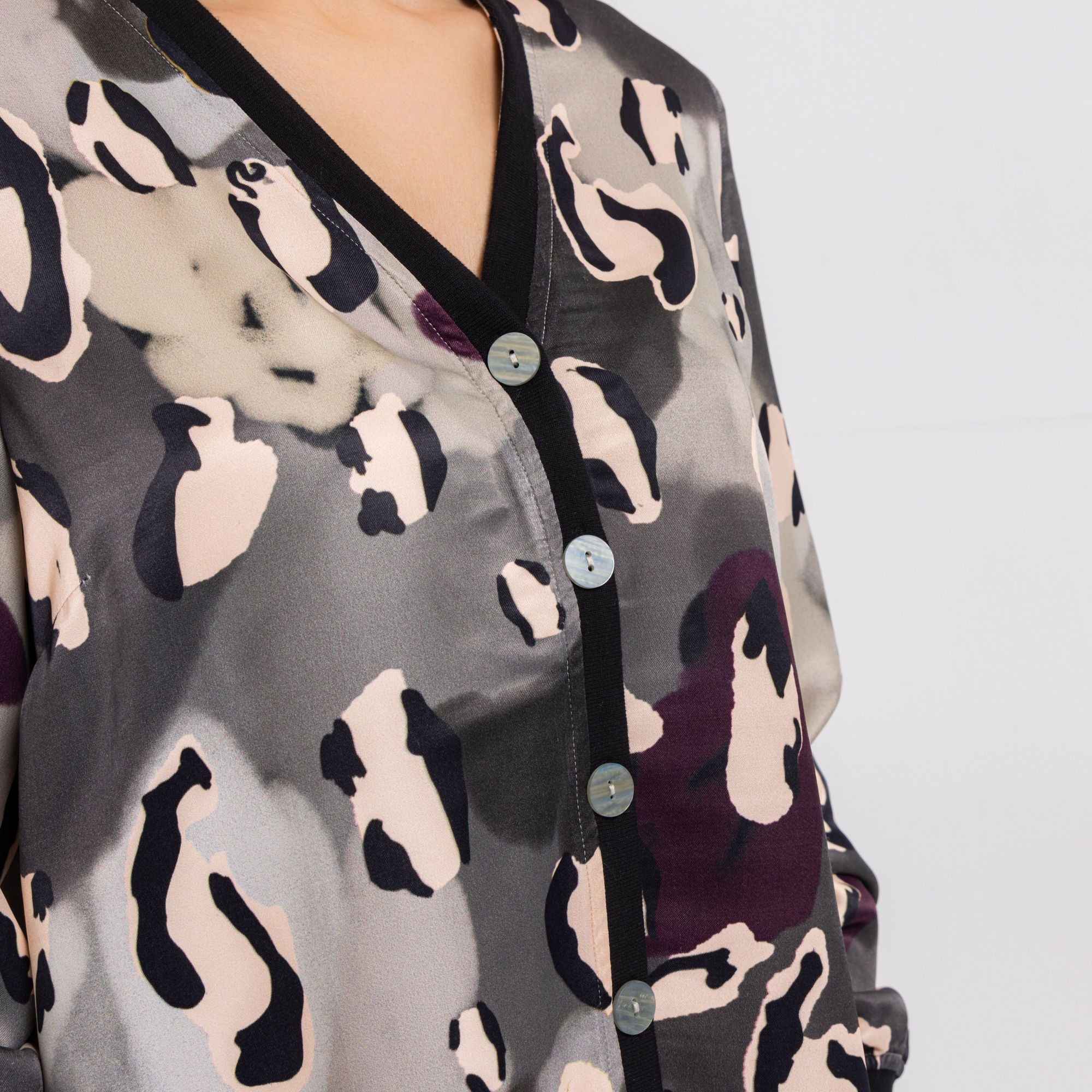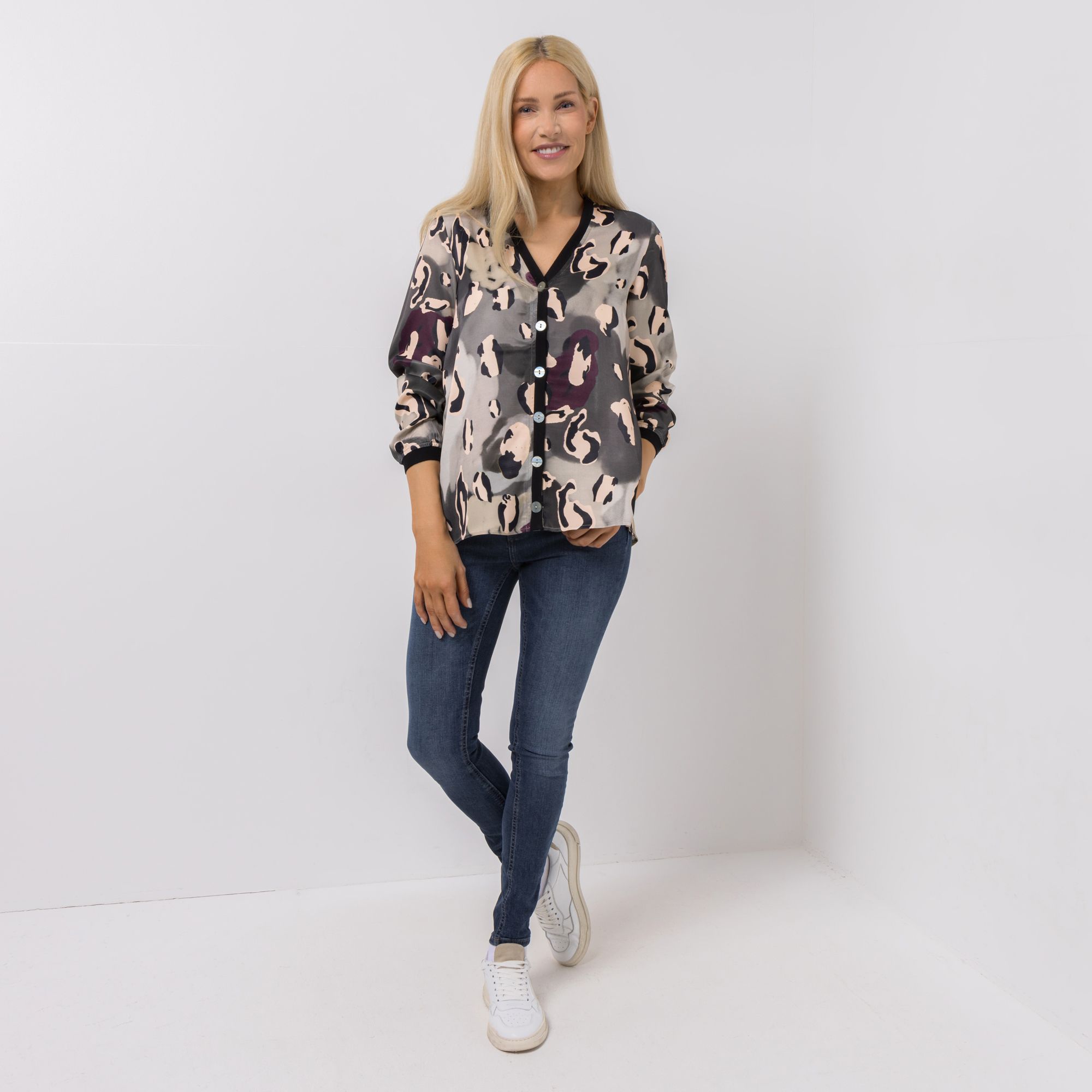DINE 'N' DANCE Bluse, 1/1-Arm V-Ausschnitt Knopfleiste leger weit