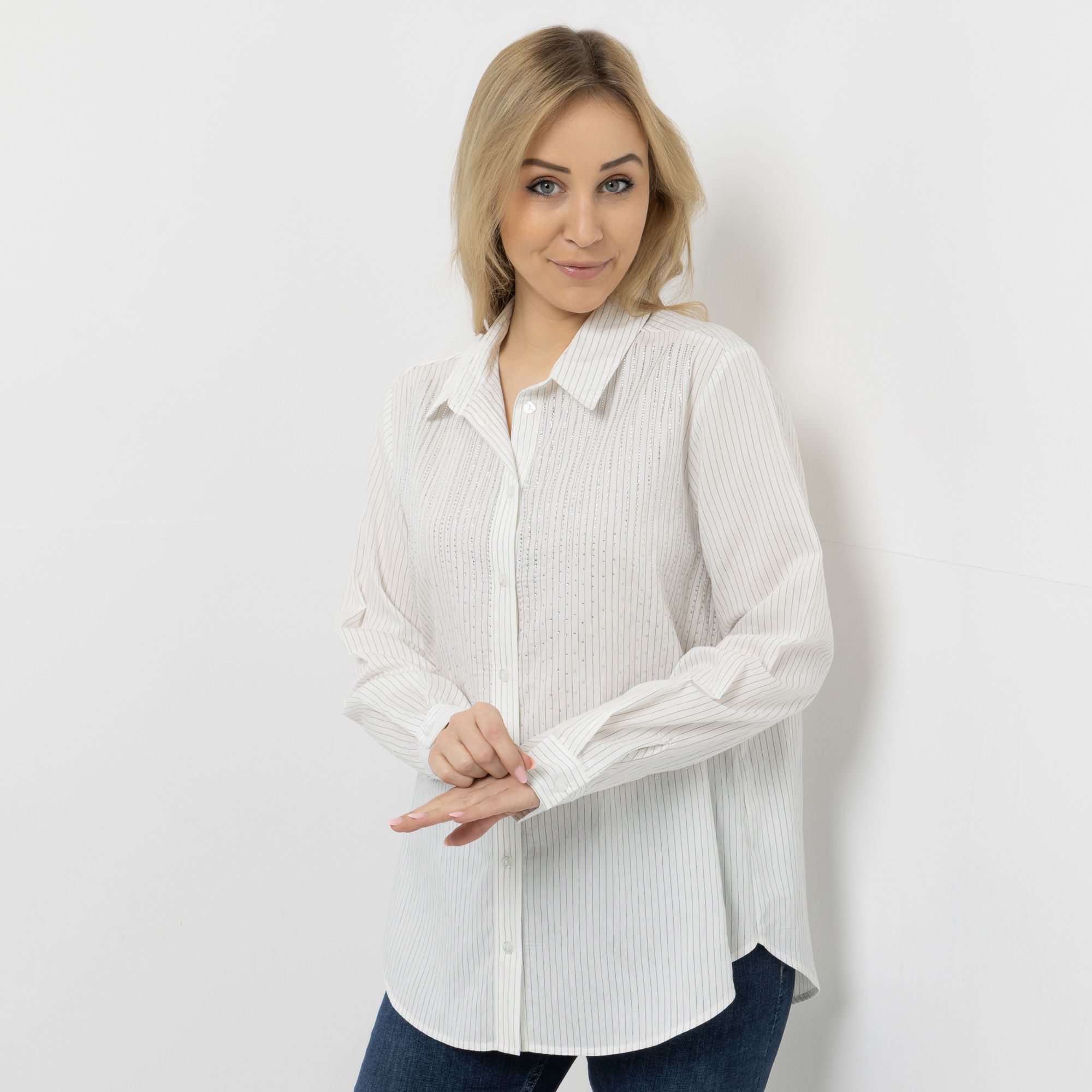 DINE 'N' DANCE Bluse, langarm Blusenkragen Strassdekoration leger weit