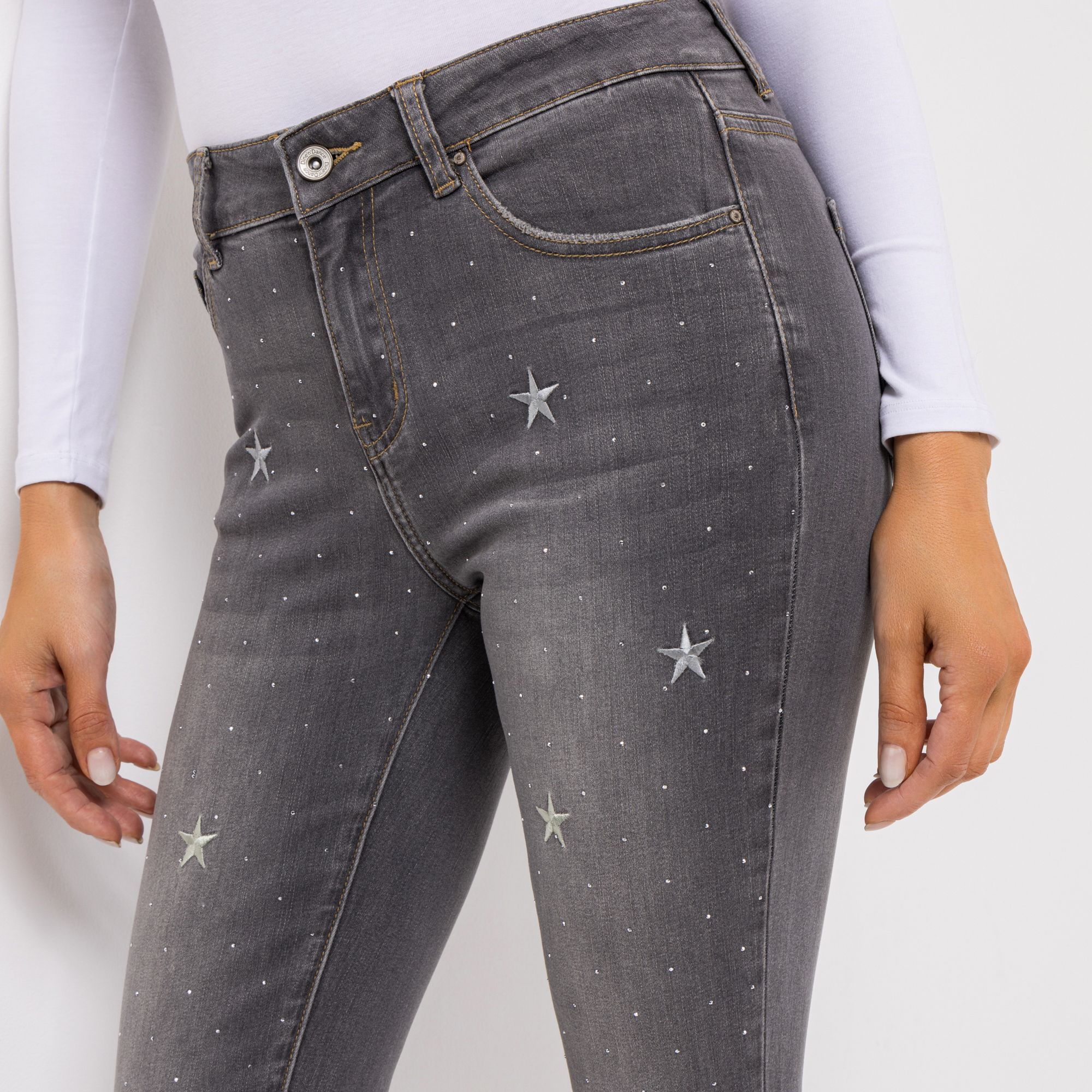 Slim-Fit-Jeans mit verspieltem Strassdekor