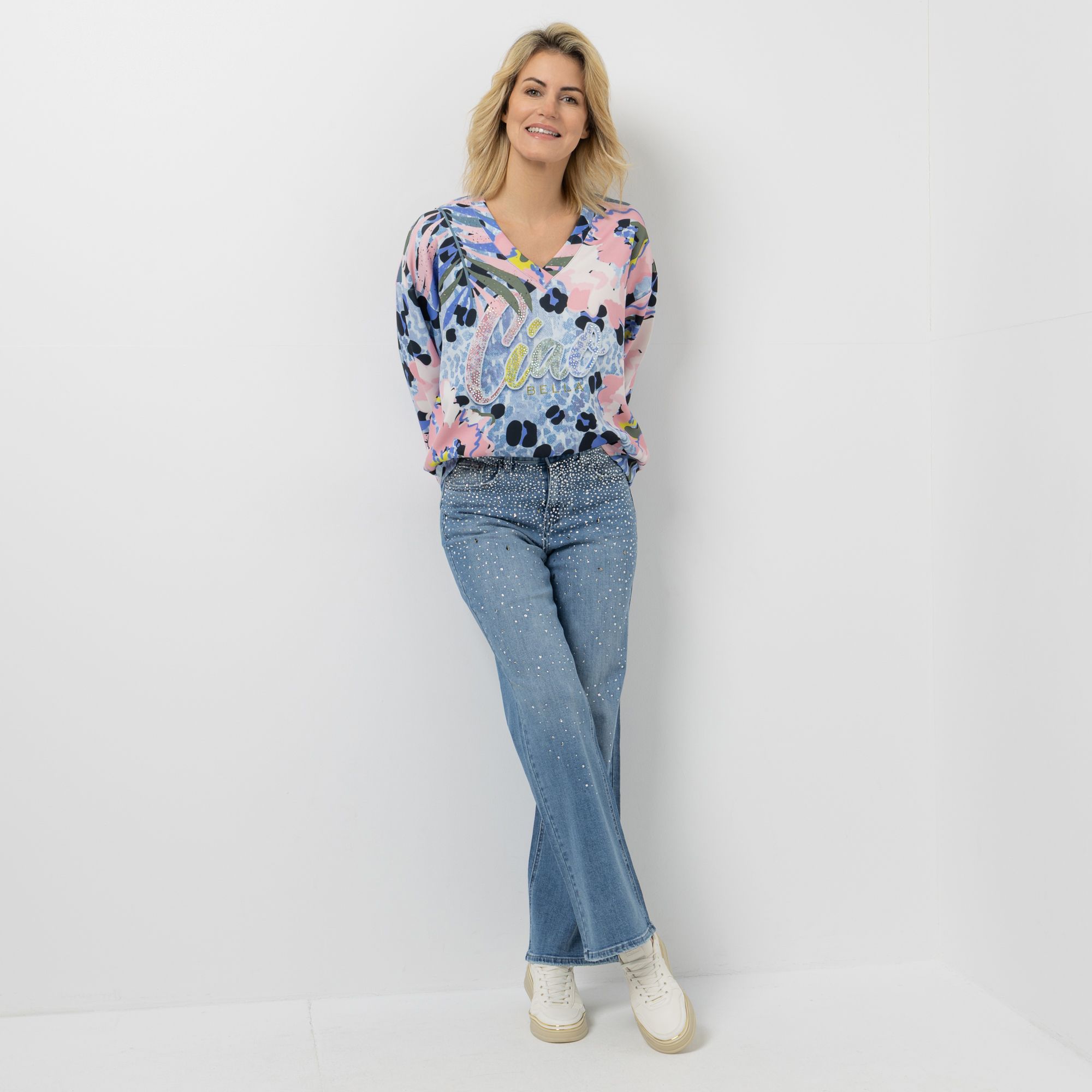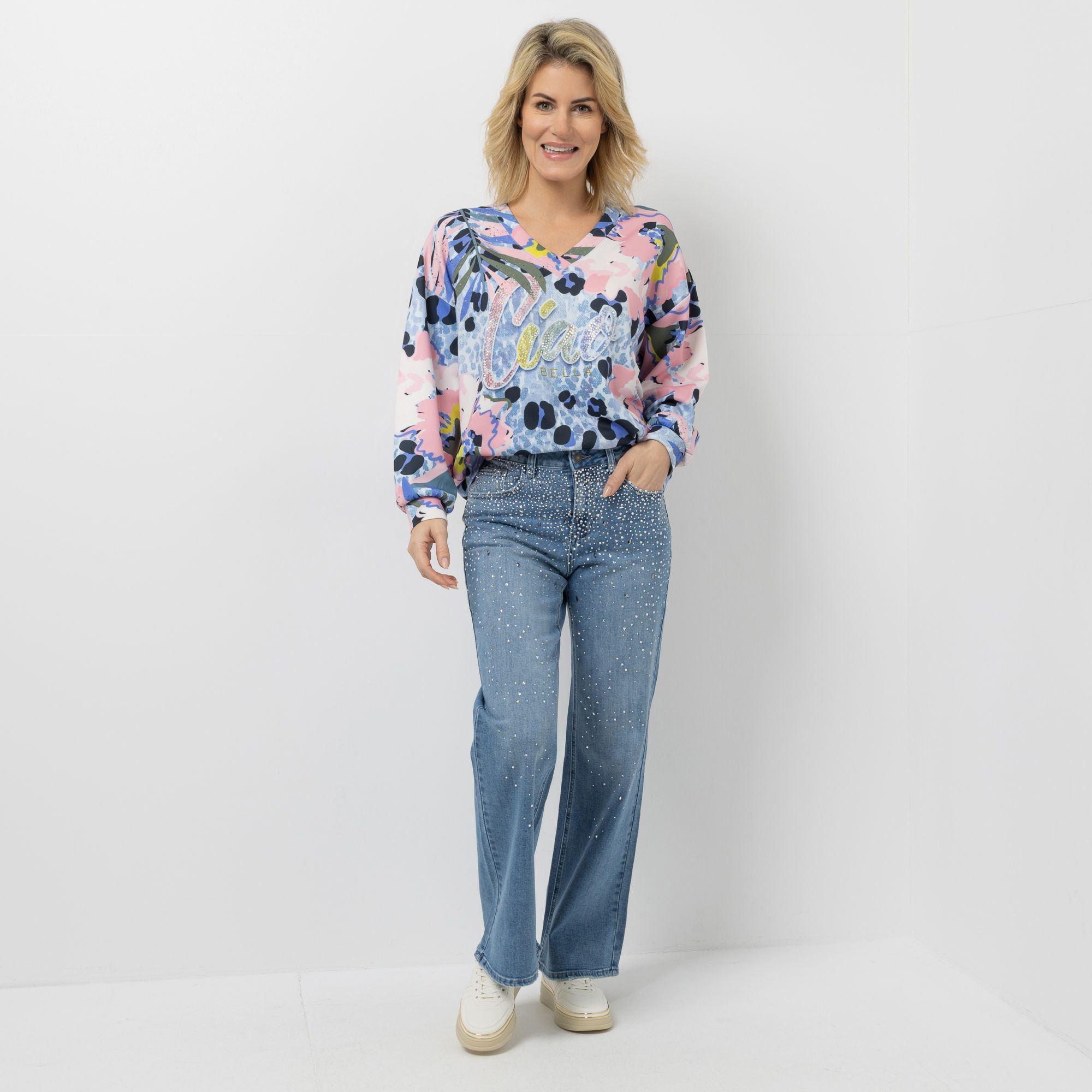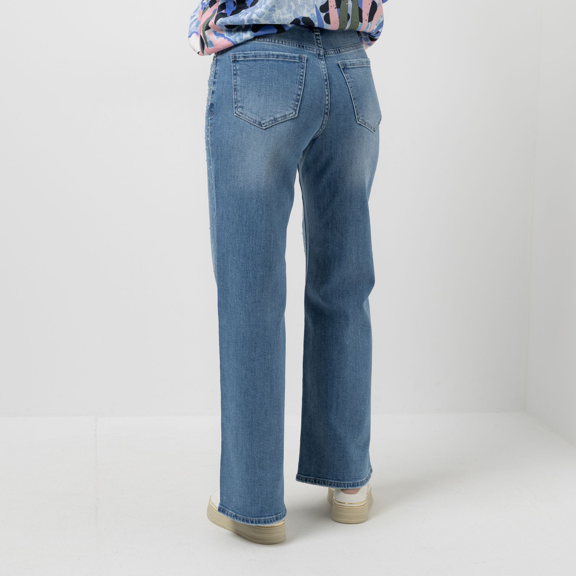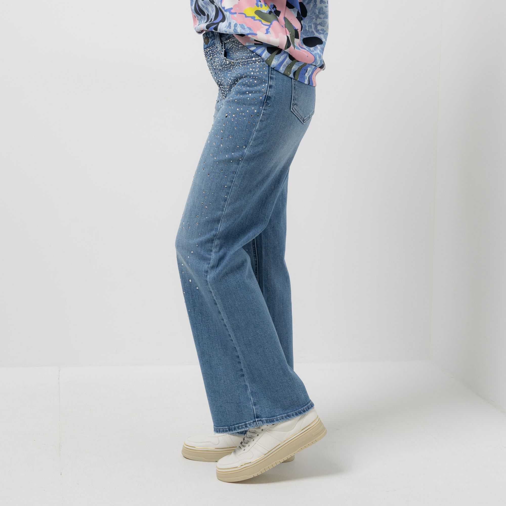 DINE 'N' DANCE Jeanshose 1/1-Länge Strasssteine weites Bein
