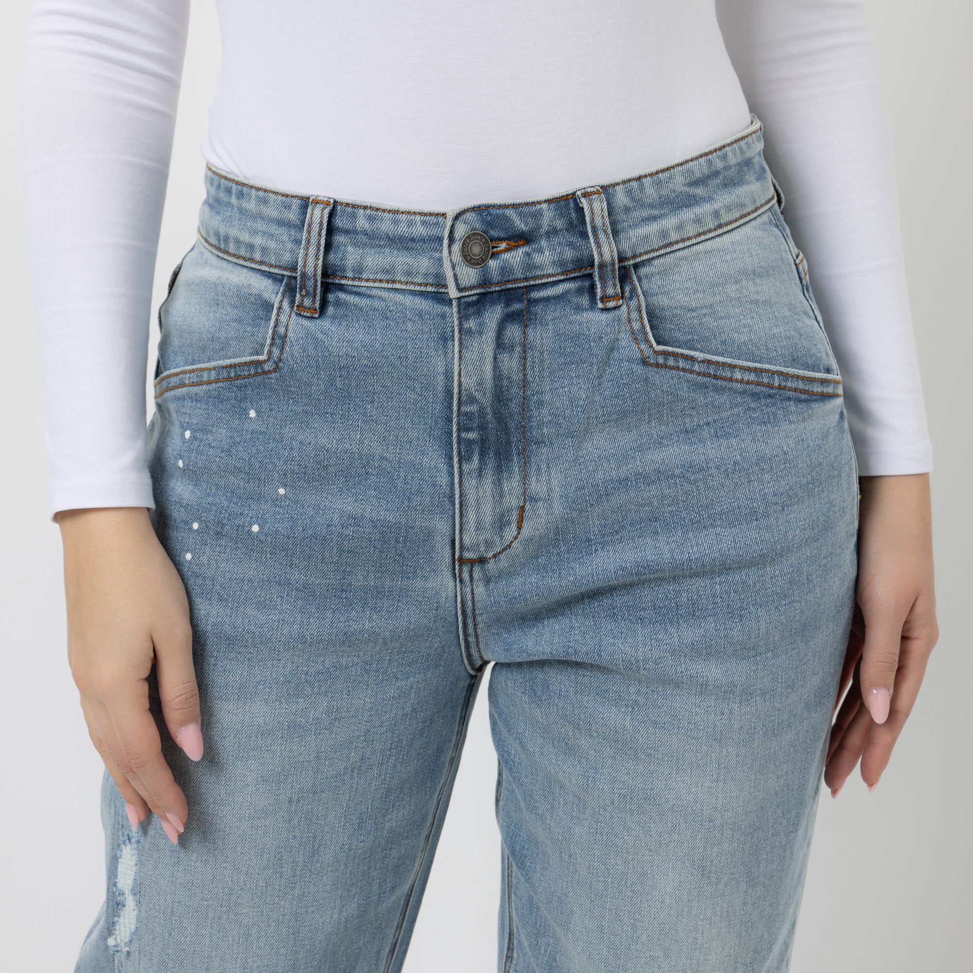 Die Hose von DINE 'N' DANCE kommt mit Farbspritzer und Destroy-Effekten