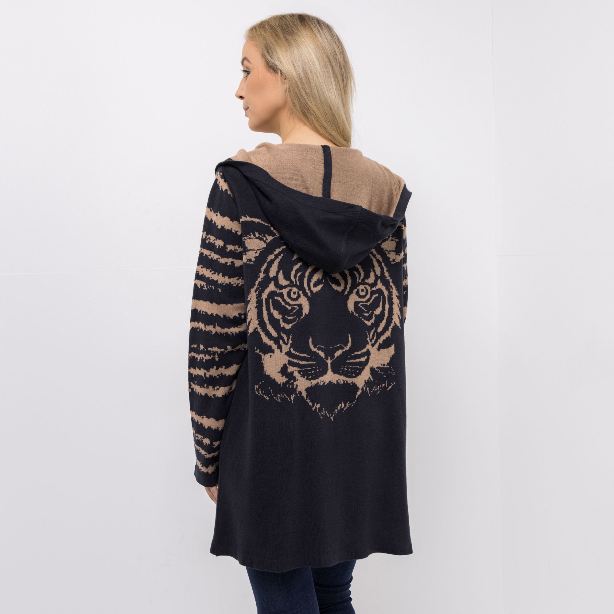 DINE 'N' DANCE Longcardigan offene Front mit Kapuze figurumspielend