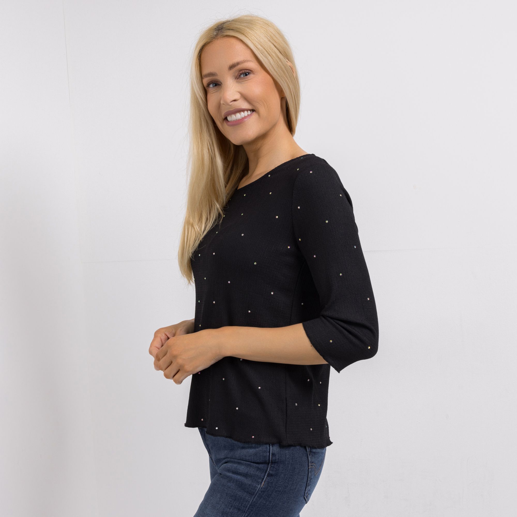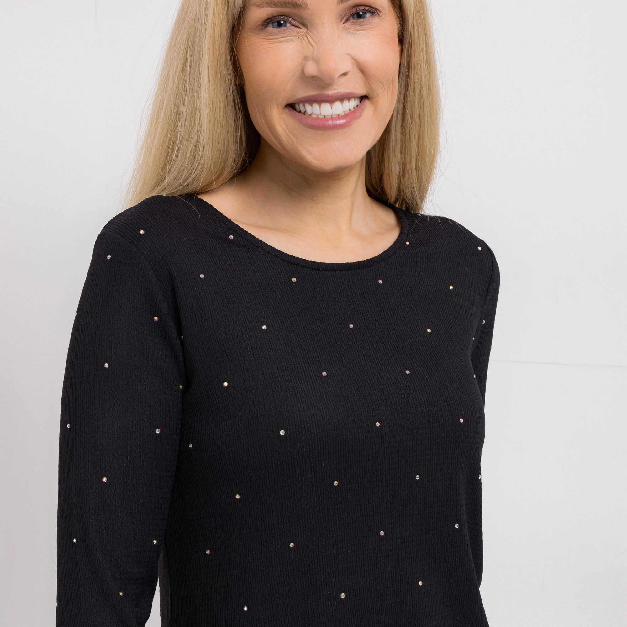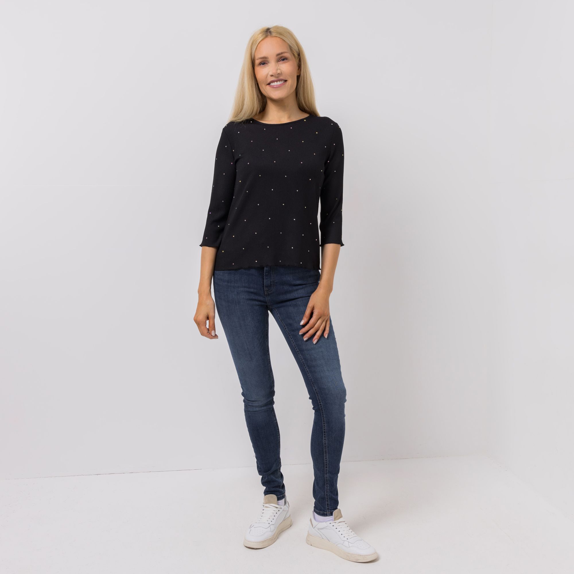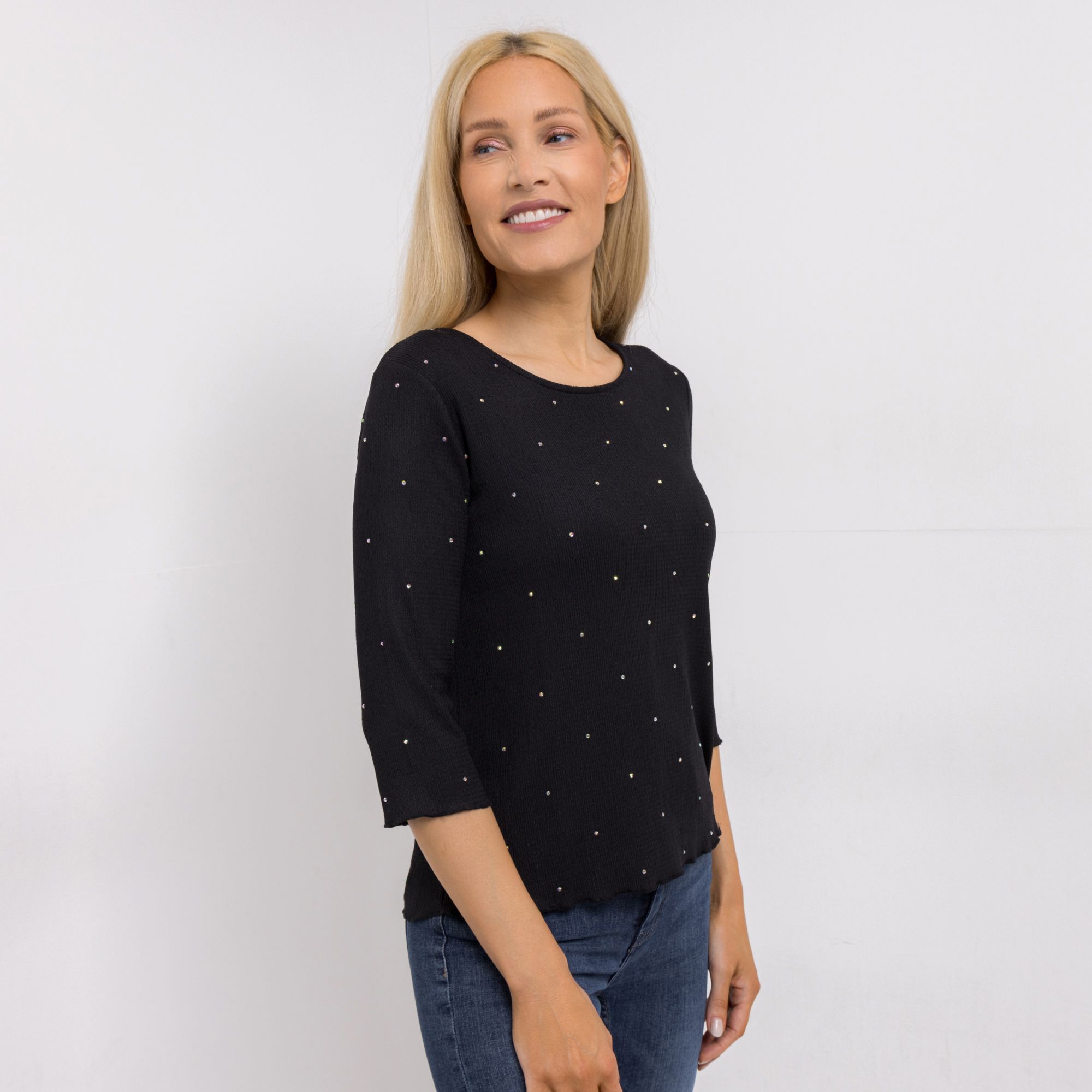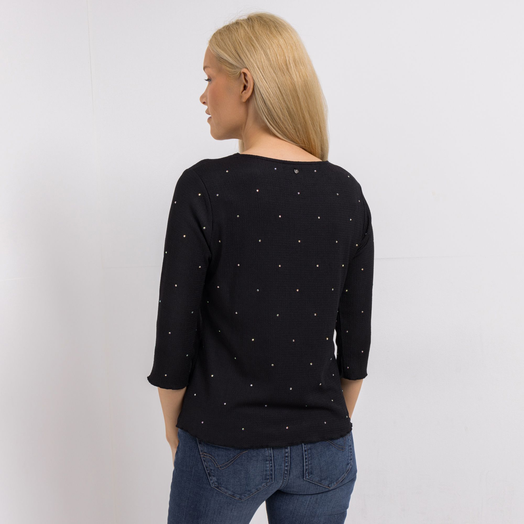 DINE 'N' DANCE Shirt, 3/4-Arm Rundhalsausschnitt Strasssteine figurumspielend