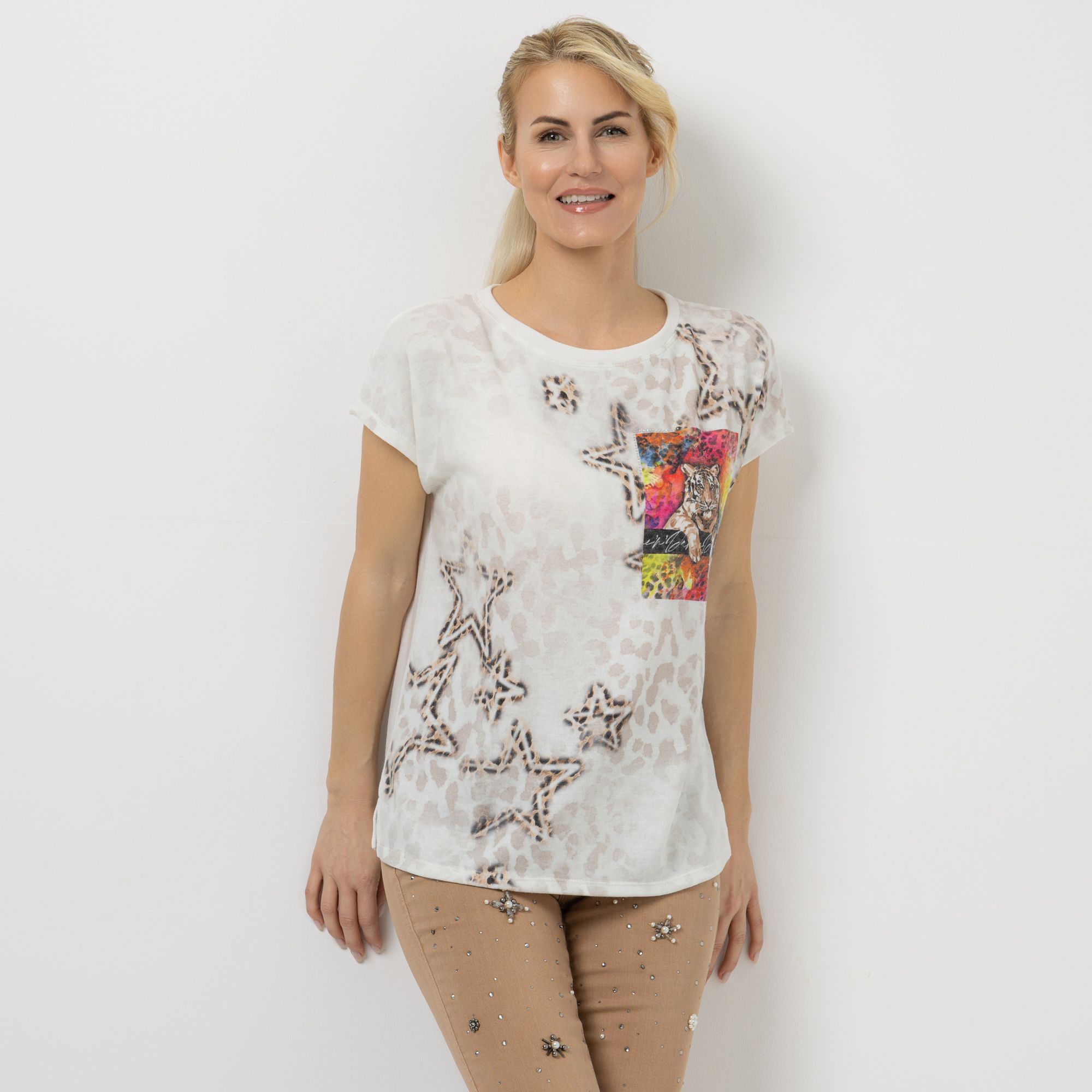 Leopard-Shirt mit Strass