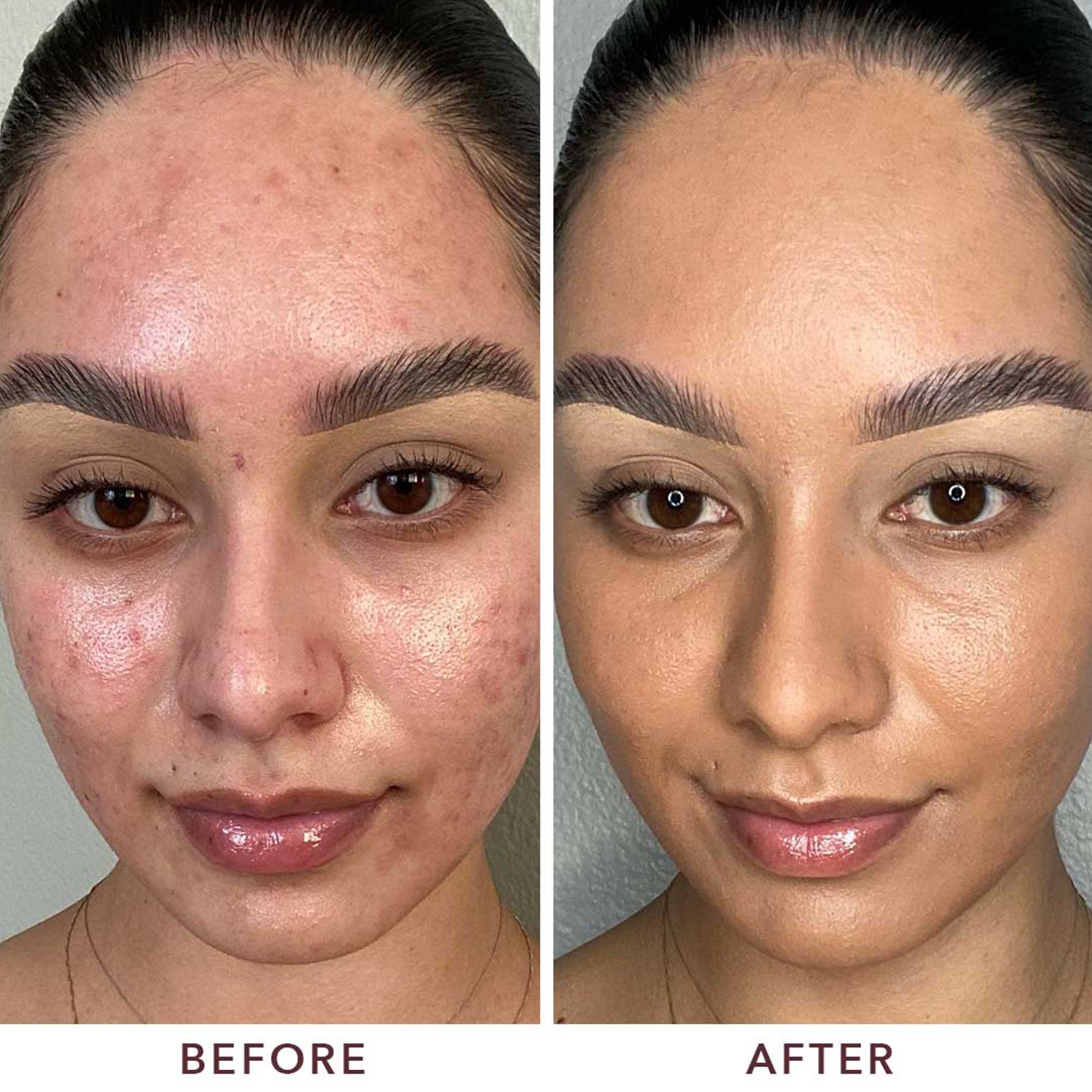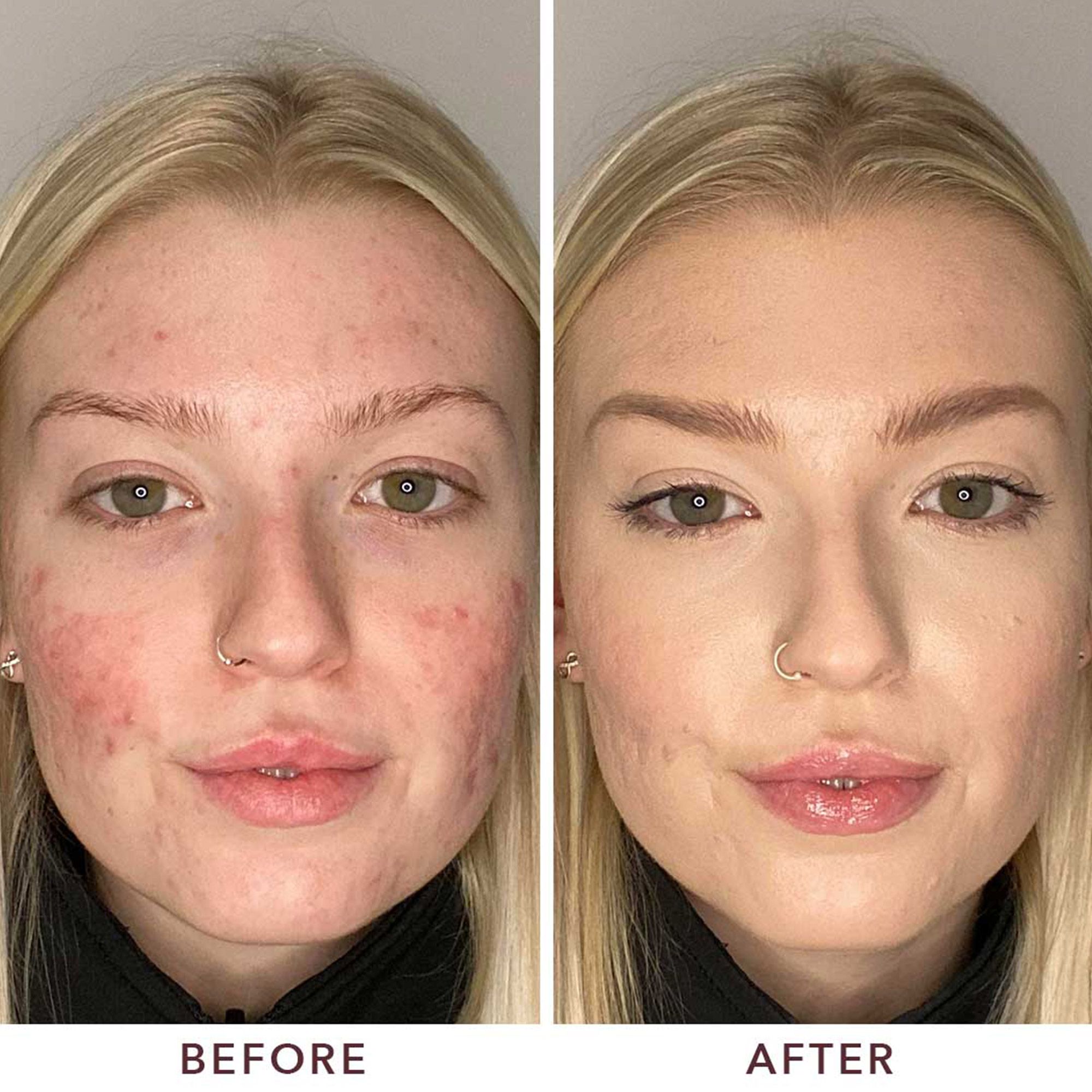 Unreine Haut mit vergrößerten Poren und feinen Linien und Unregelmäßigkeiten lässt sich mit dem Set aus DOLL 10 BEAUTY Luminous Super Coverage T.C.E Foundation und Luminous Blending Pinsel schnell und unproblematisch kaschieren.