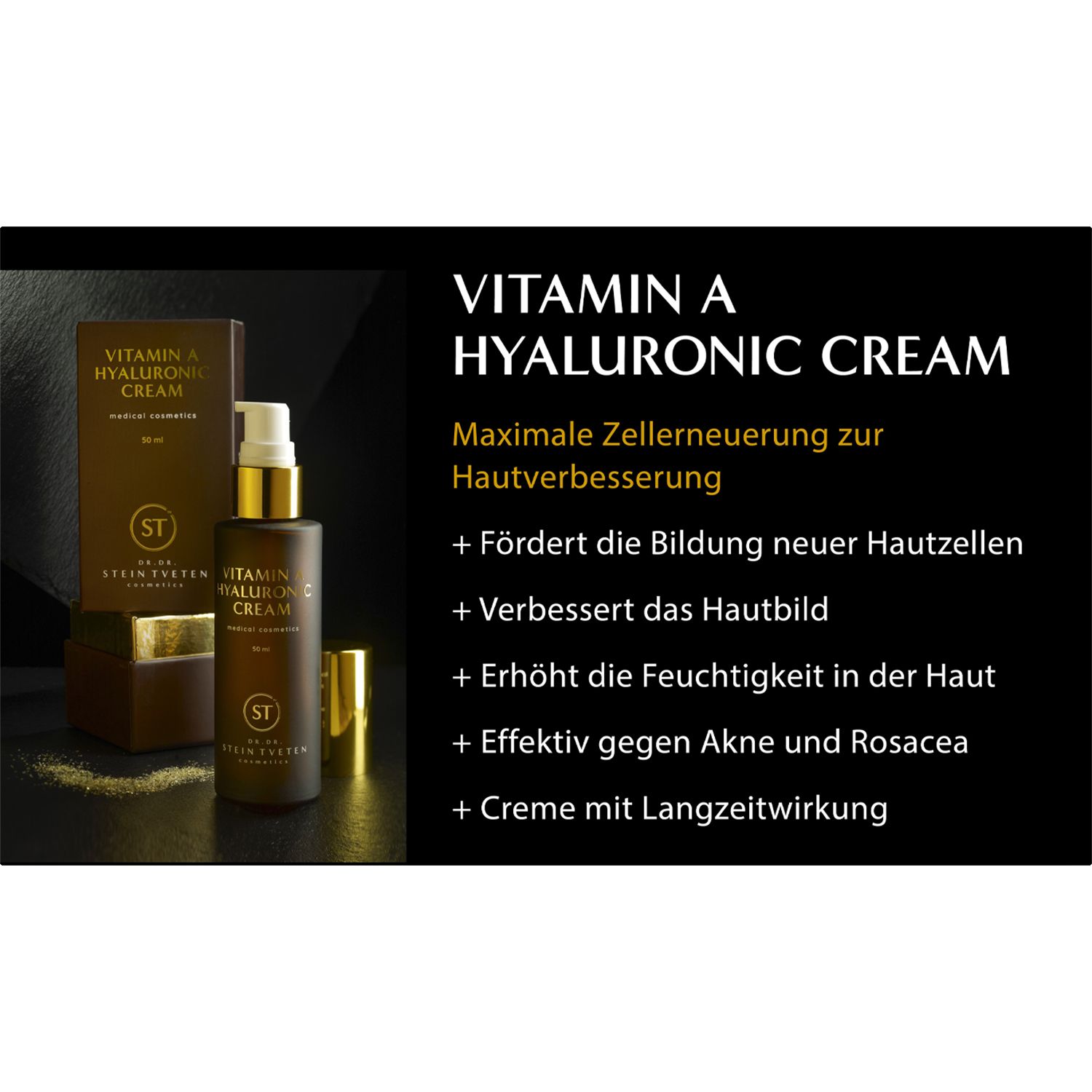 Pflege und Fürsorge für deine Haut: Die DR. DR. STEIN TVETEN medical cosmetics Vitamin A & Hyaluron Creme enthält Wirkstoffe, die die Haut bei der Produktion neuer Zellen unterstützen können.