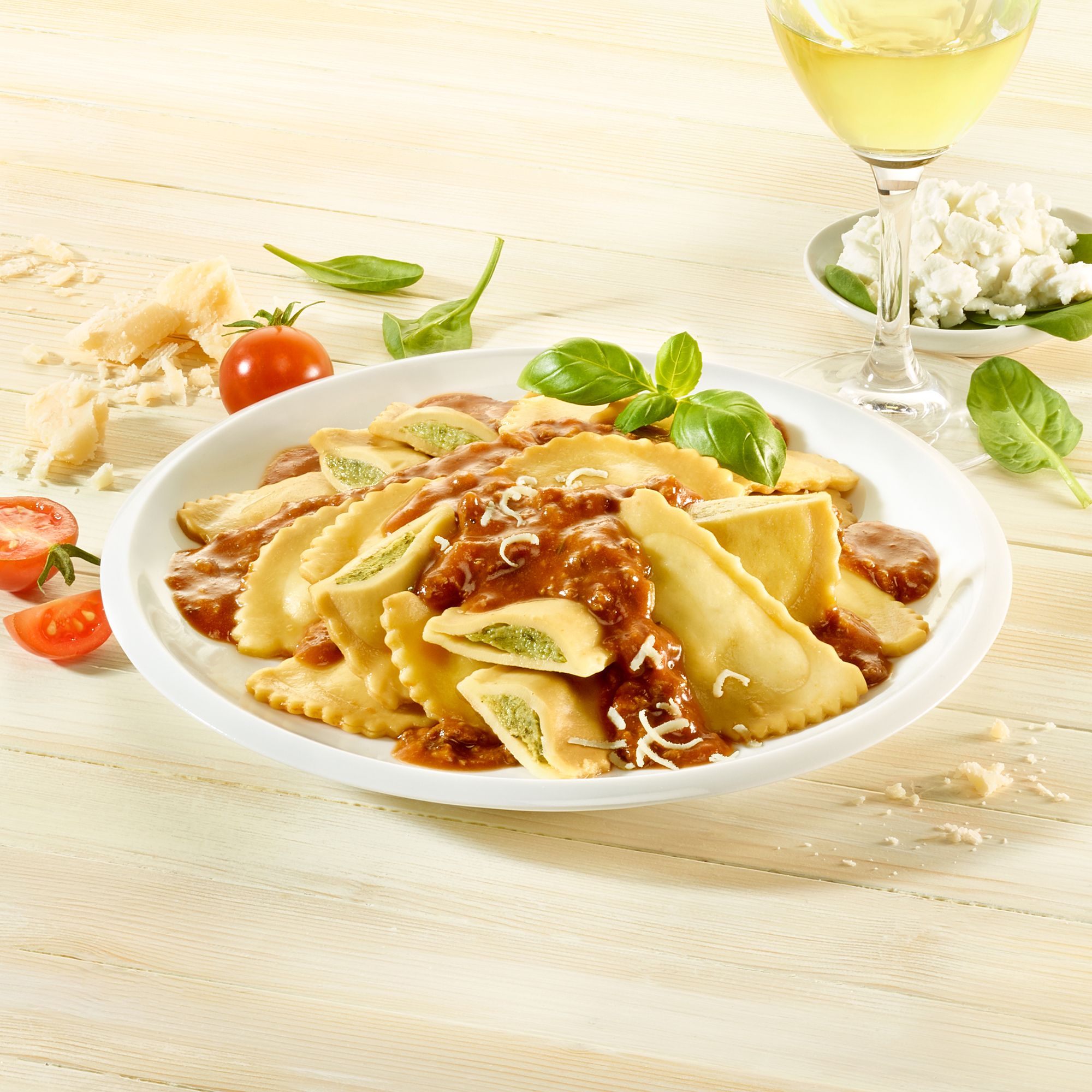 - Ravioli mit Käse und Spinat, fettarm, mit Bio-Rindfleisch