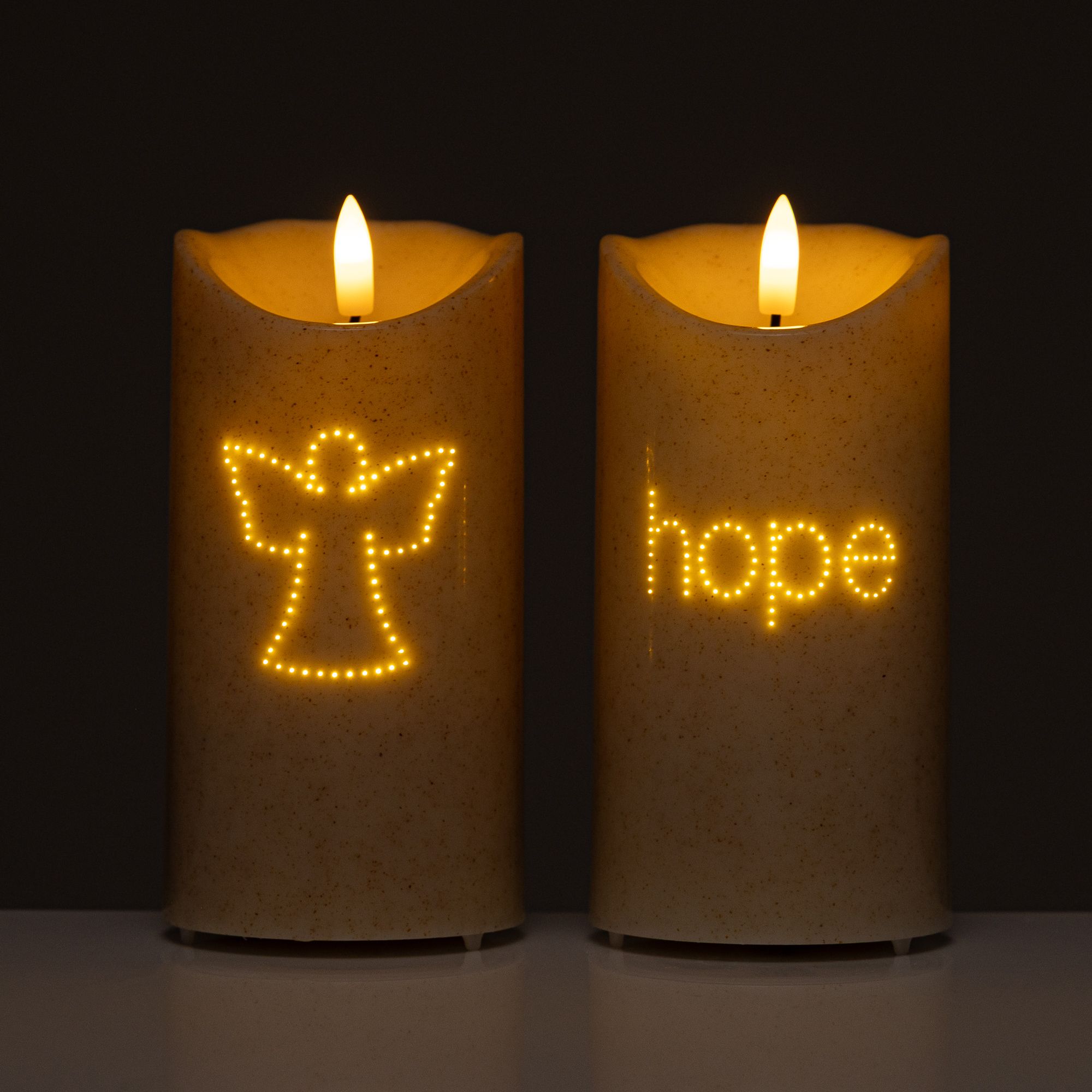 2 Stimmungsvolle LED-Kerzen mit liebevollen Motiven