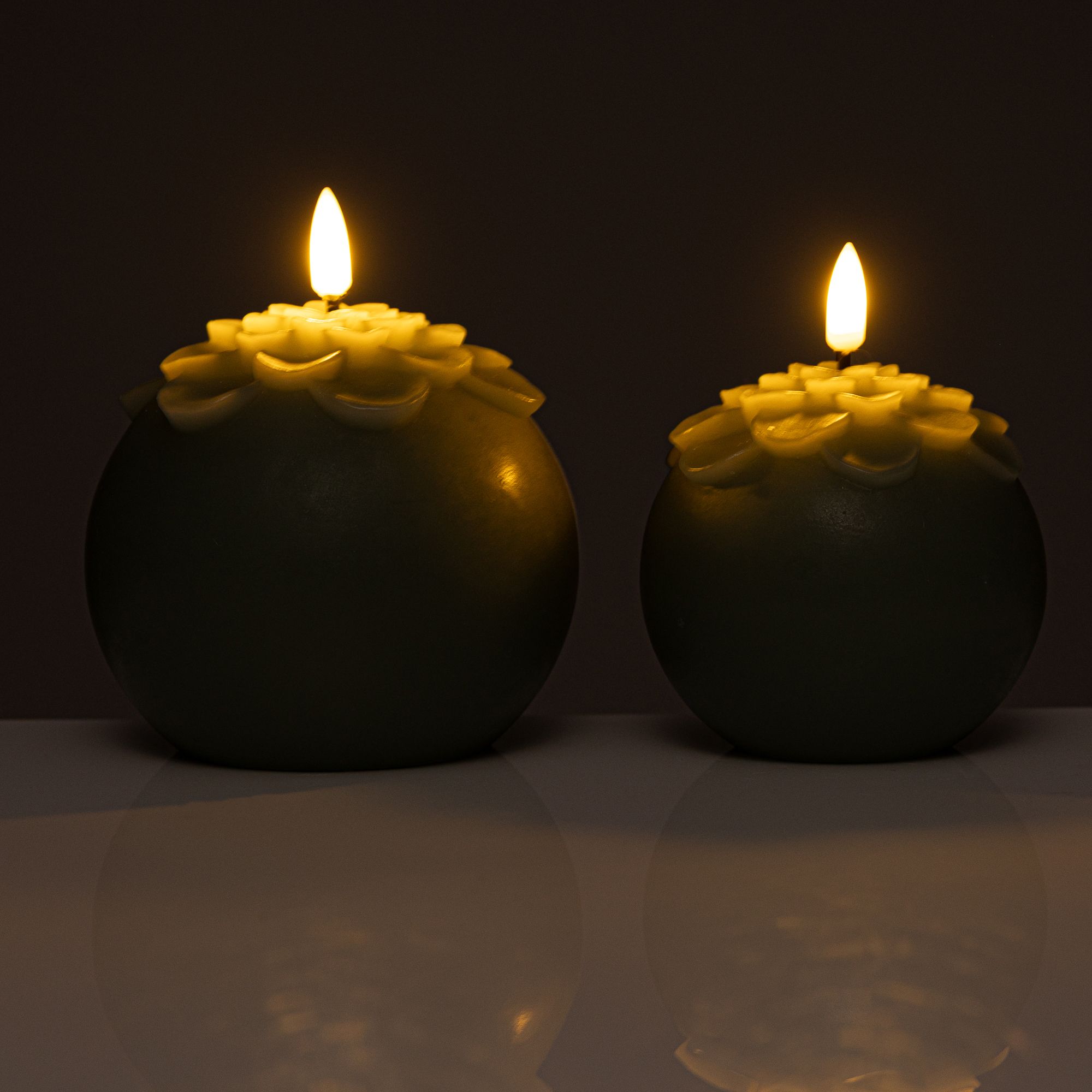 • 2 LED-Kugelkerzen mit Blüten-Relief