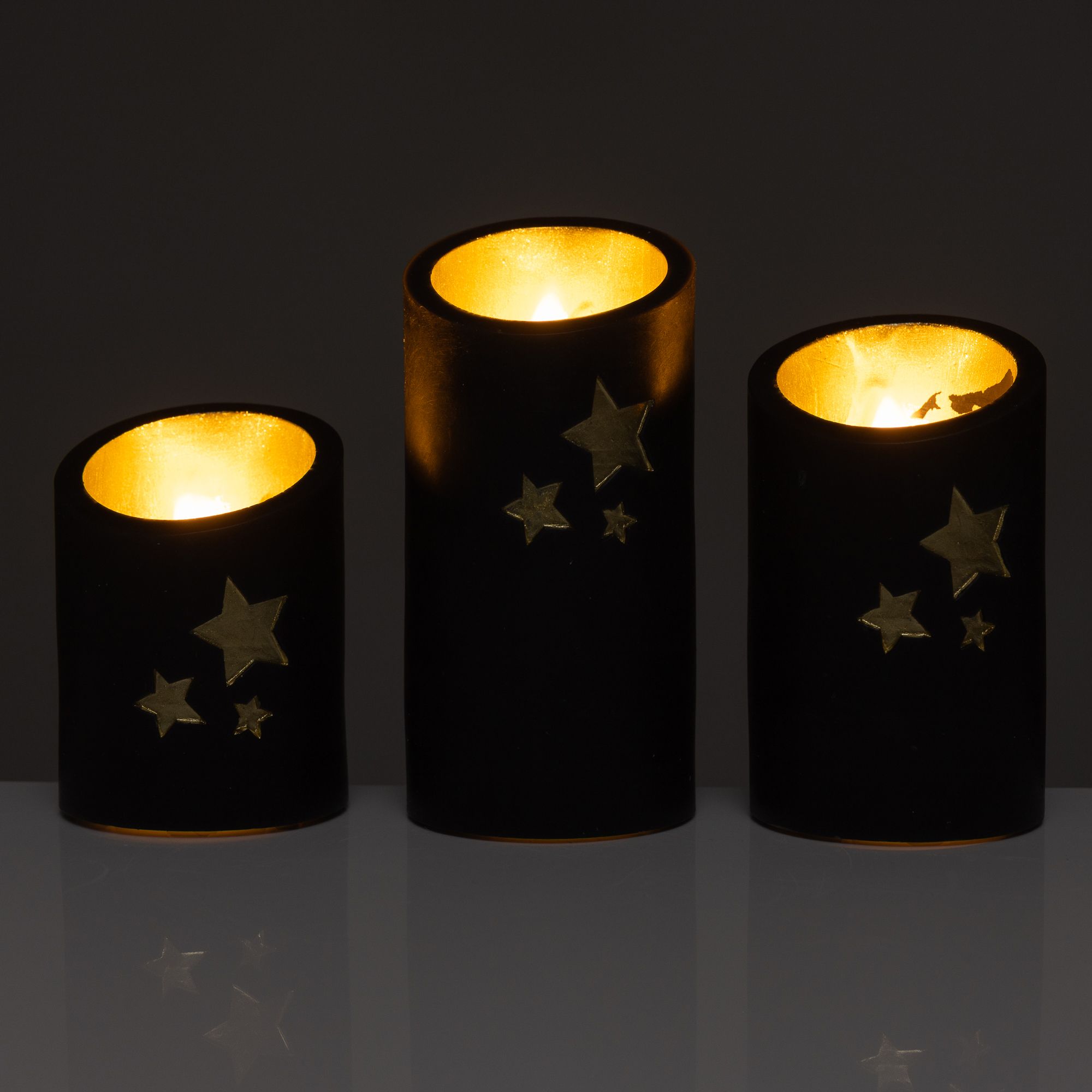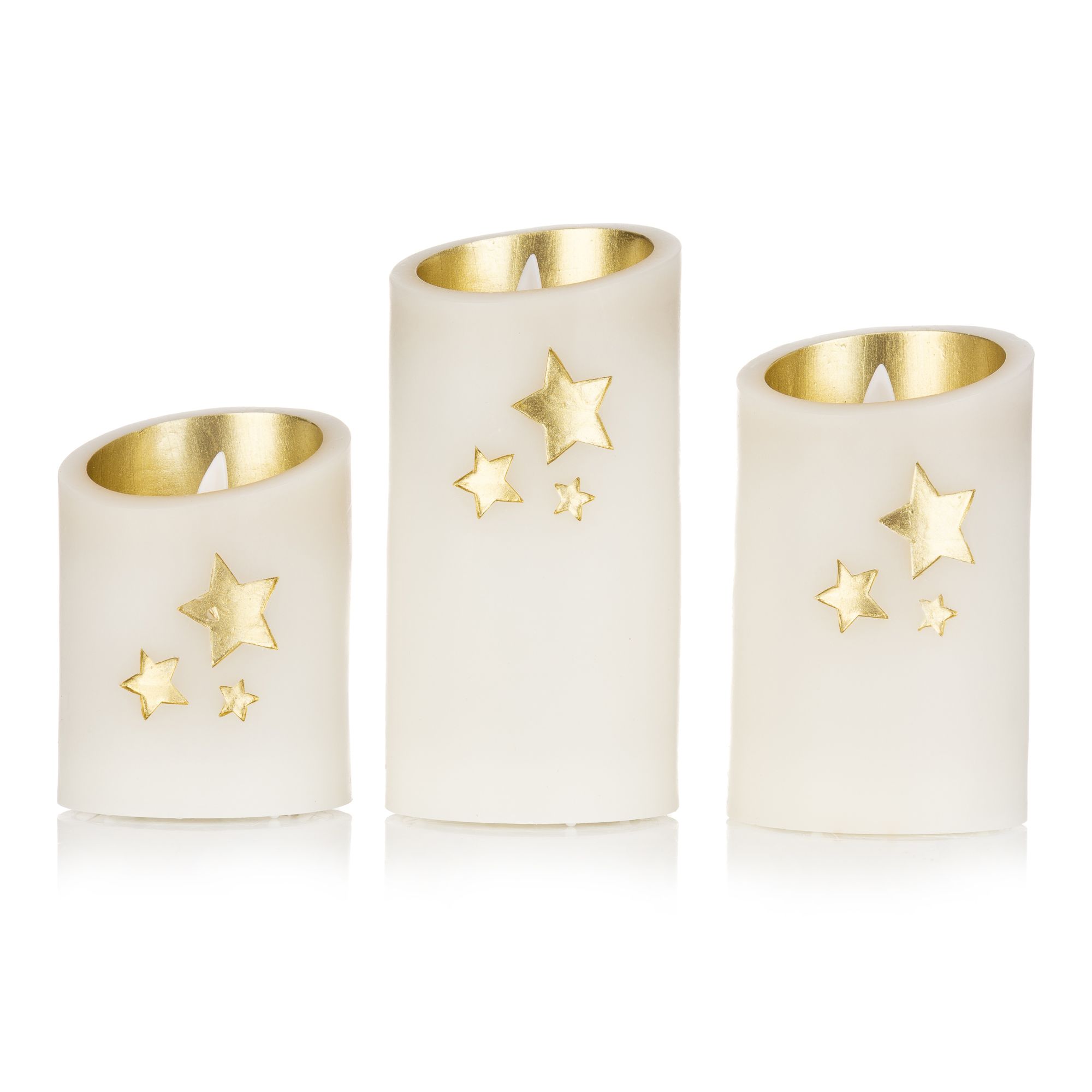 ELAMBIA 3 LED-Kerzen Sternen-Motiv 5h-Timerfunktion Höhe 10, 12,5 & 15cm
