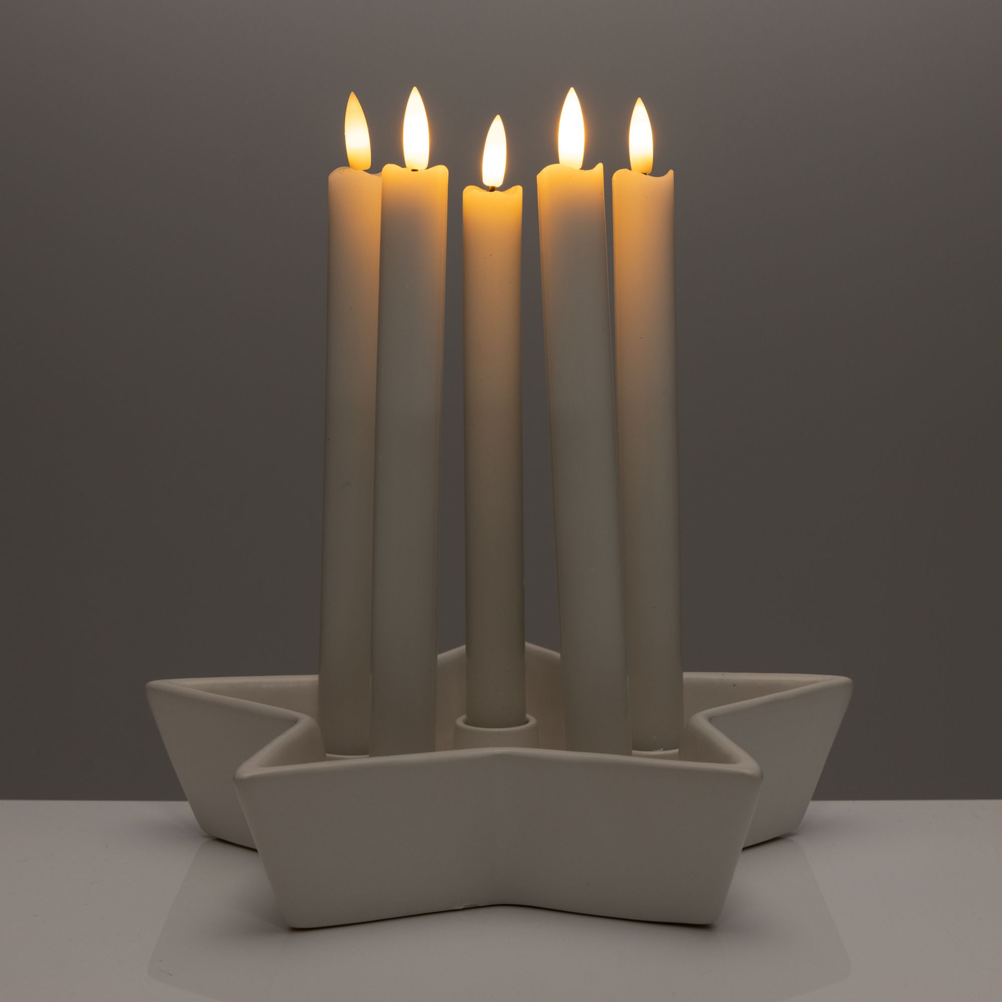 Mit diesen eleganten Ensemble aus Kerzen in einer Keramik-Sternschale von ELAMBIA schmeckt das Dinner zu zweit, im Kreis der Familie oder mit Gästen noch besser! Wenn sich das harmonische Flammenlicht in Trinkgläsern und Besteck spiegelt, bleiben keine Wünsche offen ...