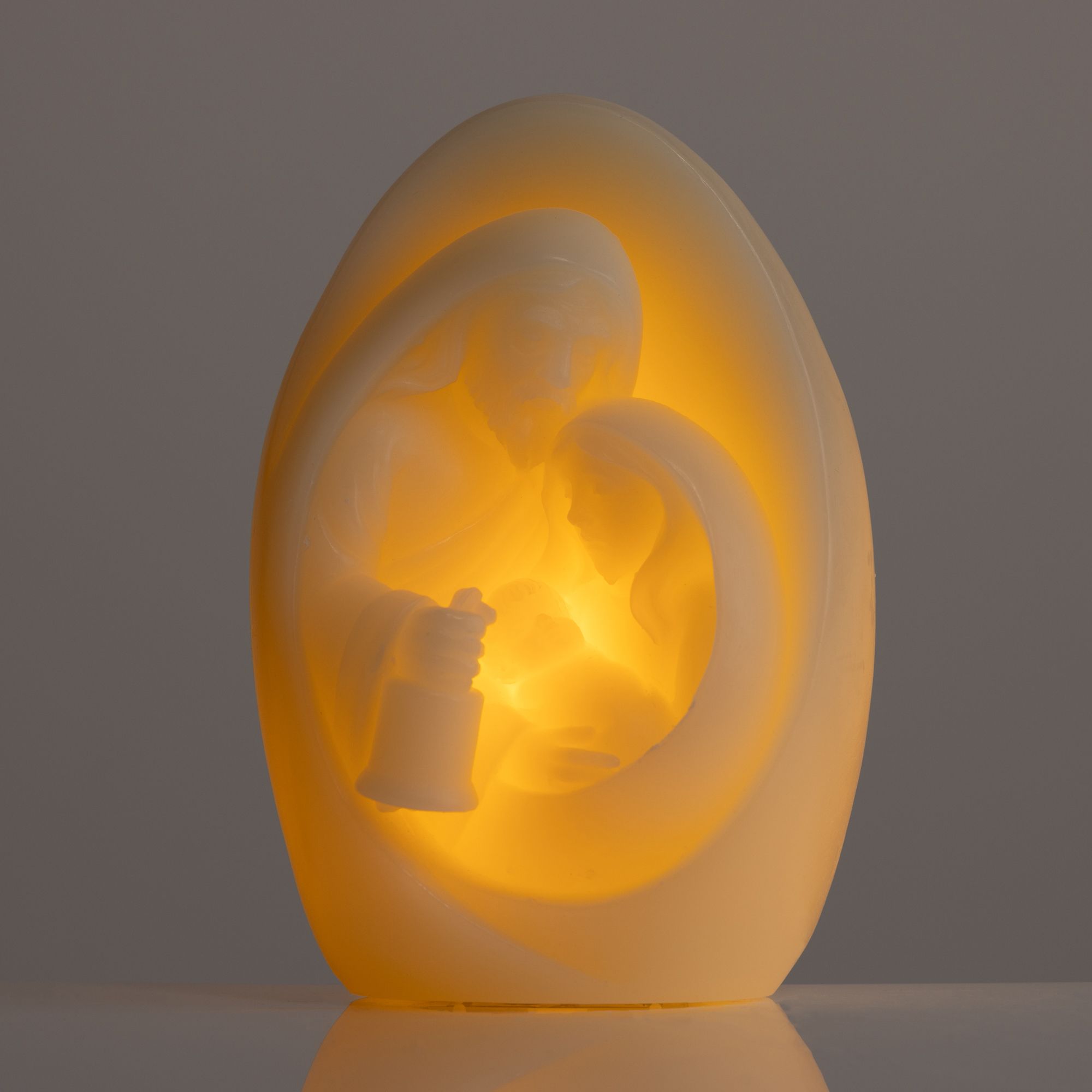 Die elfenbeinfarbene LED-Figurenkerze von ELAMBIA, die die Heiligen Familie zeigt, ist ein wunderbarer Blickmagnet und ein tolles Mitbringsel für einen lieben Menschen.