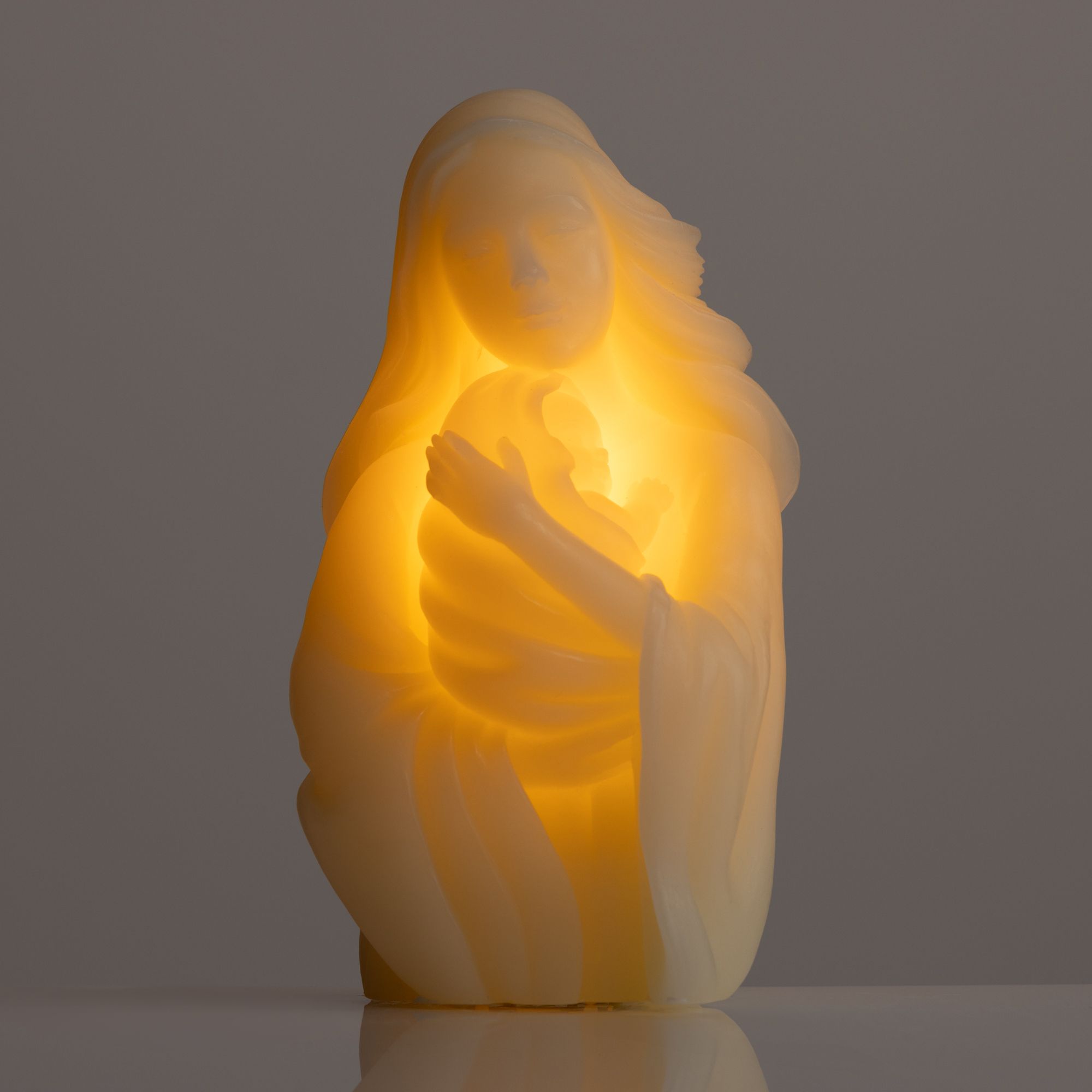 Die Figurenkerze von ELAMBIA ist mit Liebe zum Detail aus echtem Wachs designt. Mutter und Kind werden von LED-Licht von innen heraus beleuchtet. Komfort inklusive: Schalte die 20 cm hohe Kerze einfach mit der Fernbedienung vom Sofa aus an, wenn dir danach ist!