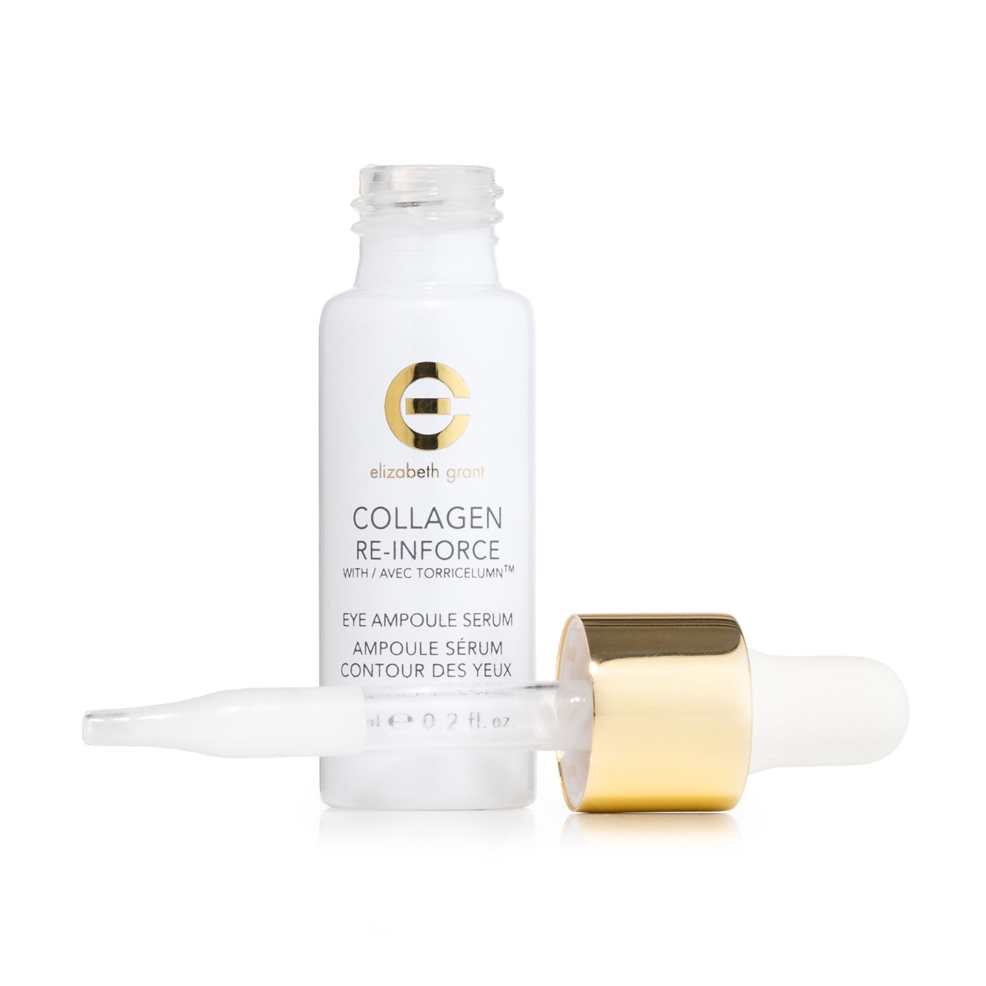 Für eine fest wirkende Kontur der Augenpartie: Die ELIZABETH GRANT Collagen Re-Inforce Augenserum-Ampullen können dabei unterstützen, feinen Linien und Fältchen entgegenzuwirken.