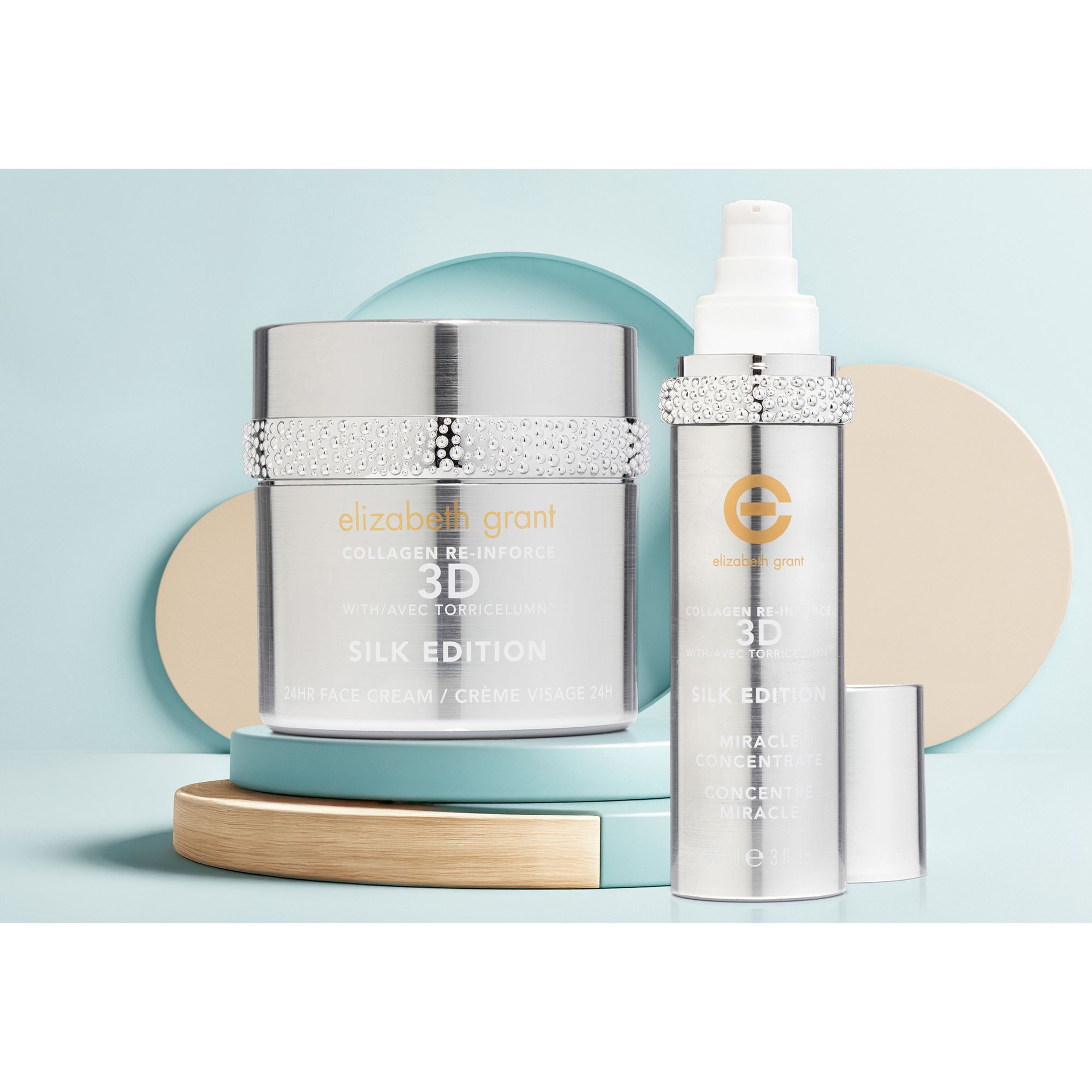 Spürbar glattere, prallere Haut! Entdecke mit ELIZABETH GRANT die besondere Kombination aus Collagen Silk 24h Creme und Miracle Serum – entwickelt, um reife, anspruchsvolle und ermüdete Haut zu bereichern. Jede Verwendung soll dazu beitragen, das Erscheinungsbild der Haut optisch zu straffen - für eine seidenweiche Verwöhnung!