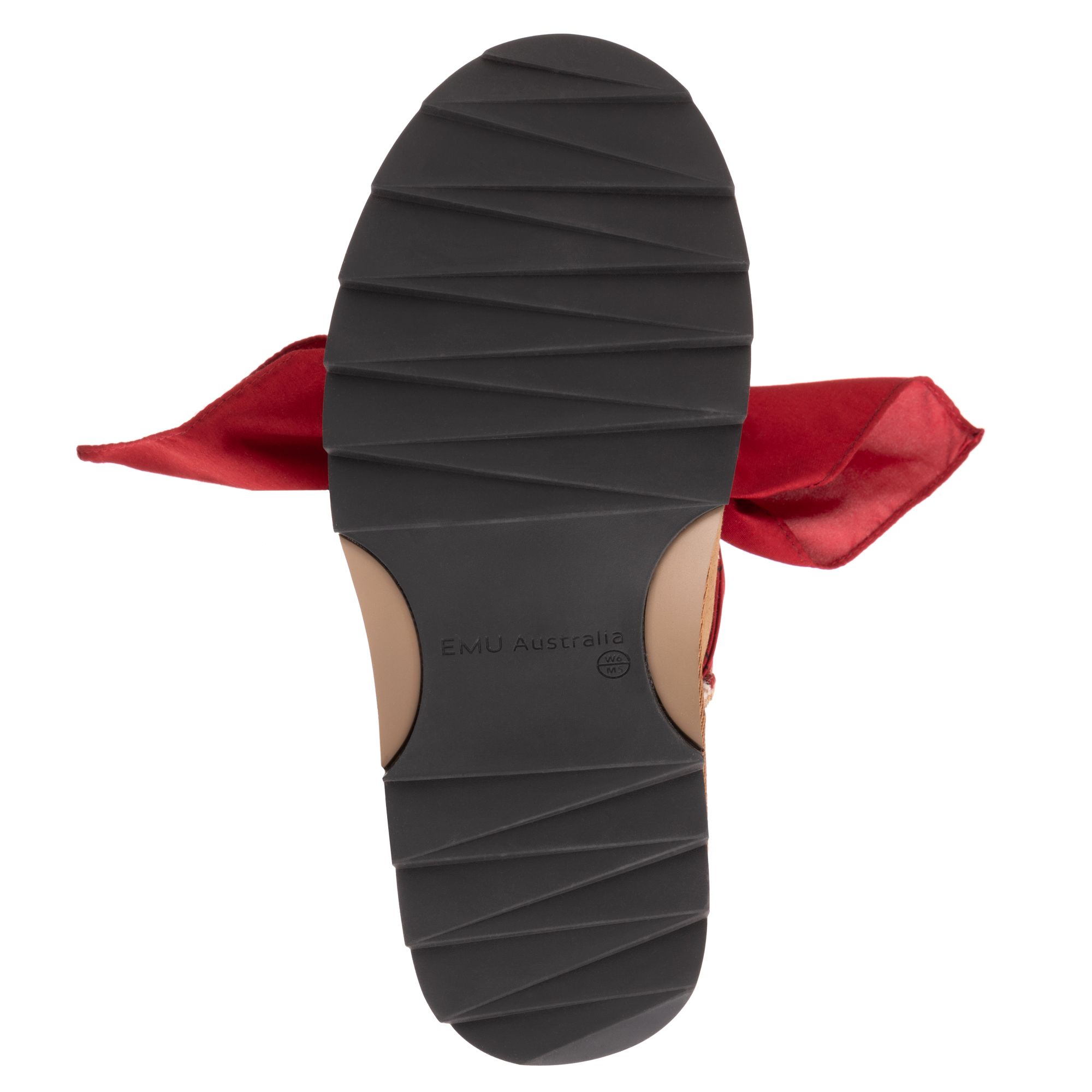 Gemacht für Herbst- und Winterwetter: Der EMU Australia Damen-Stiefel aus Schaffell ist wasserabweisend, mit einer strapazierfähigen Sharky-Sohle ausgestattet und zeigt auf der Vorderseite einen einzigartigen Bandana-Akzent.