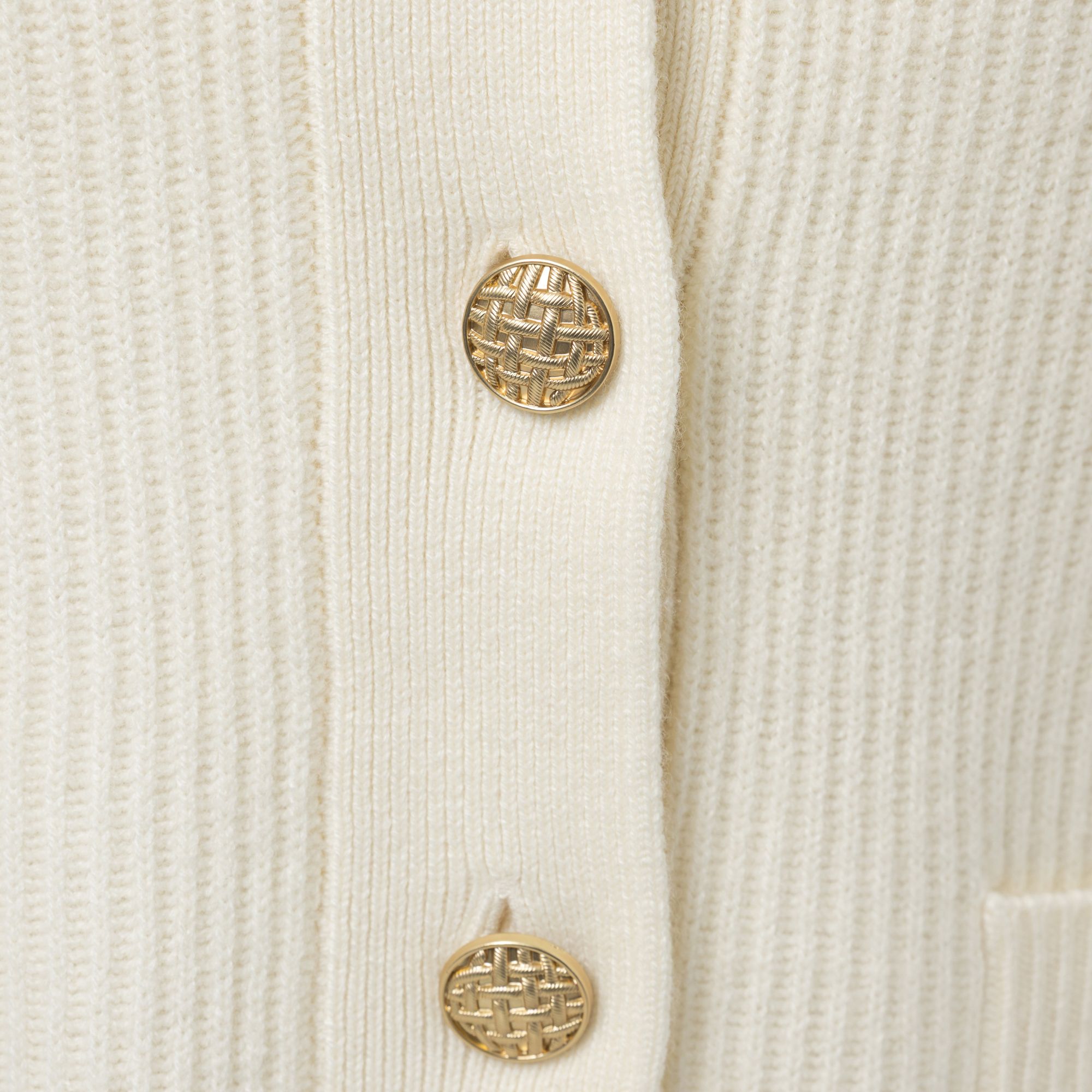 Mit liebevollen Details präsentiert sich die EVA LUTZ Strickjacke im Rippenstrick und einem eleganten Rundhalsausschnitt