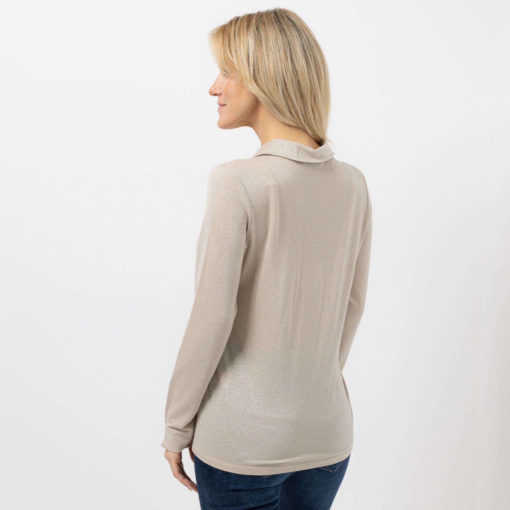 Mit EVA LUTZ erlebst du eine moderne Jerseybluse, die mit feinem Glanzgarn und liebevollen Details wie einer Knopfleiste und Logo-Anhänger deinen Look aufwertet.