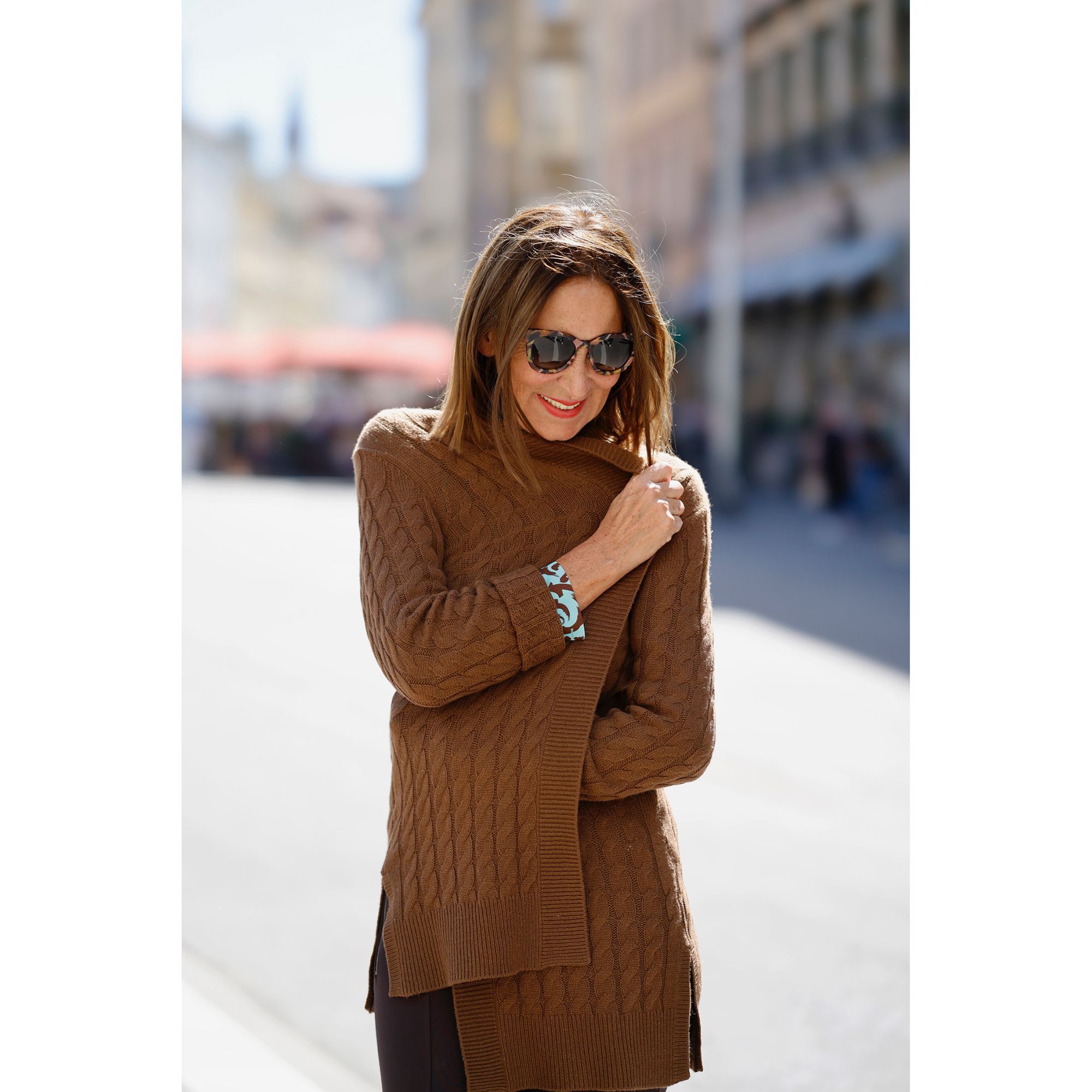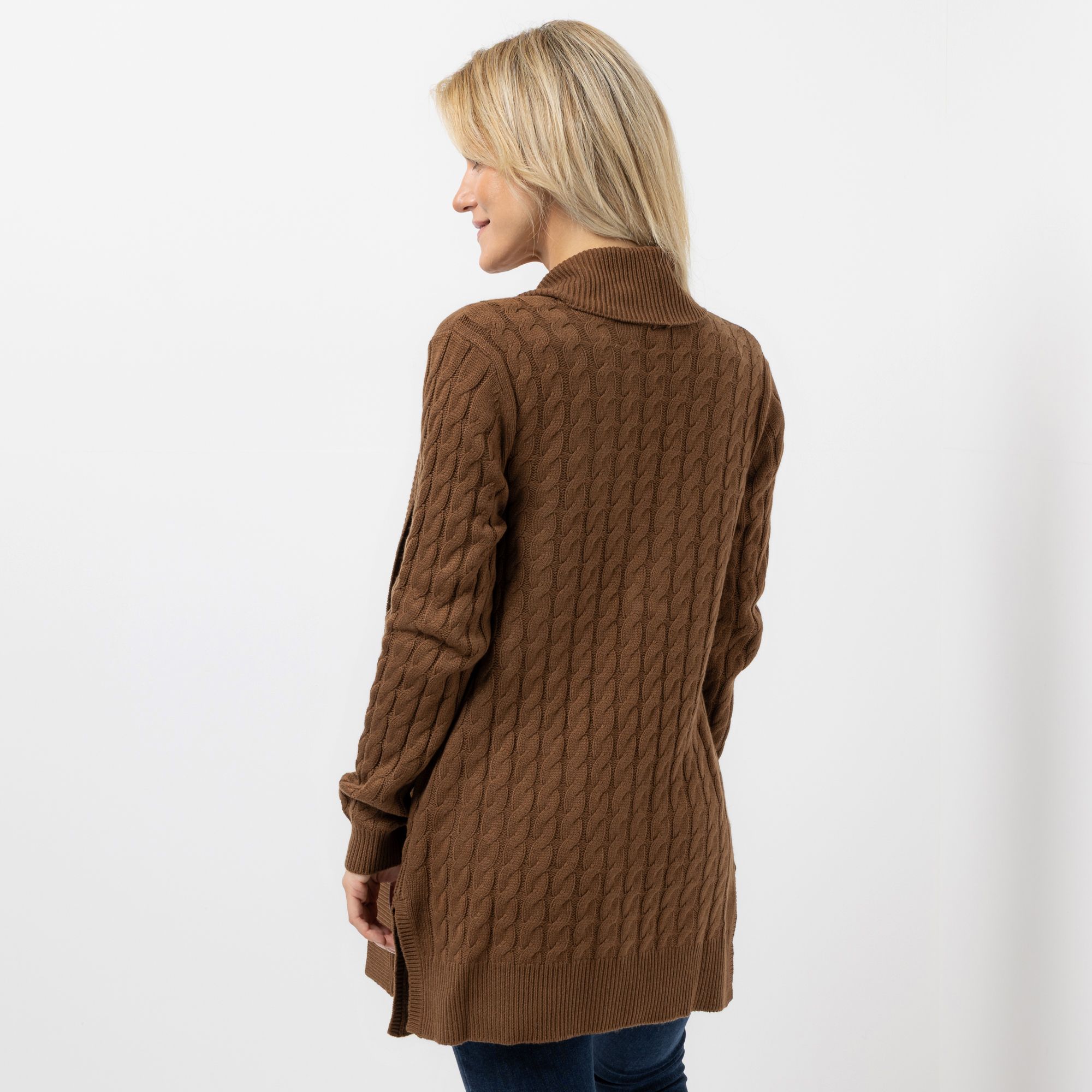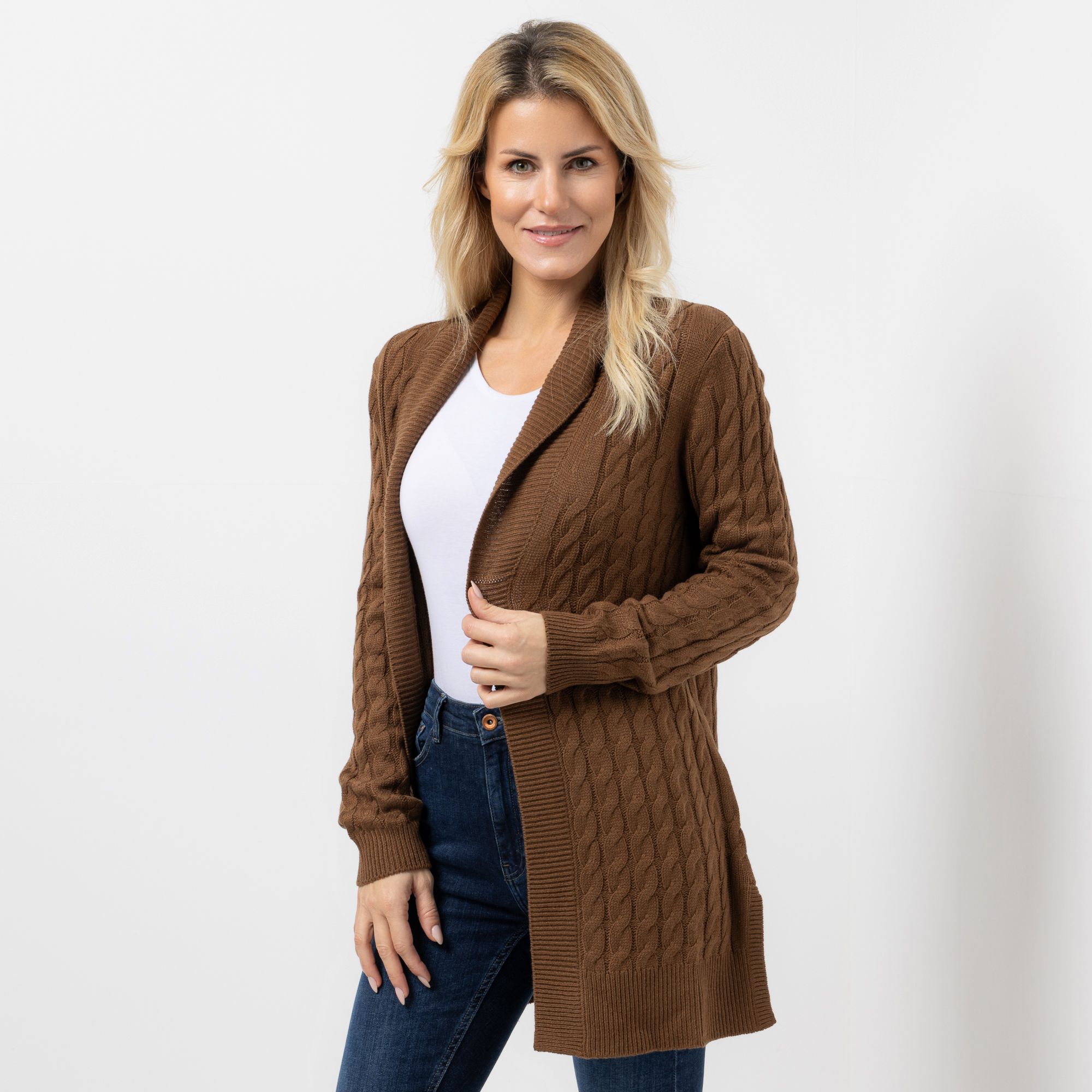 EVA LUTZ Longcardigan offene Front Zopfmuster figurumspielend