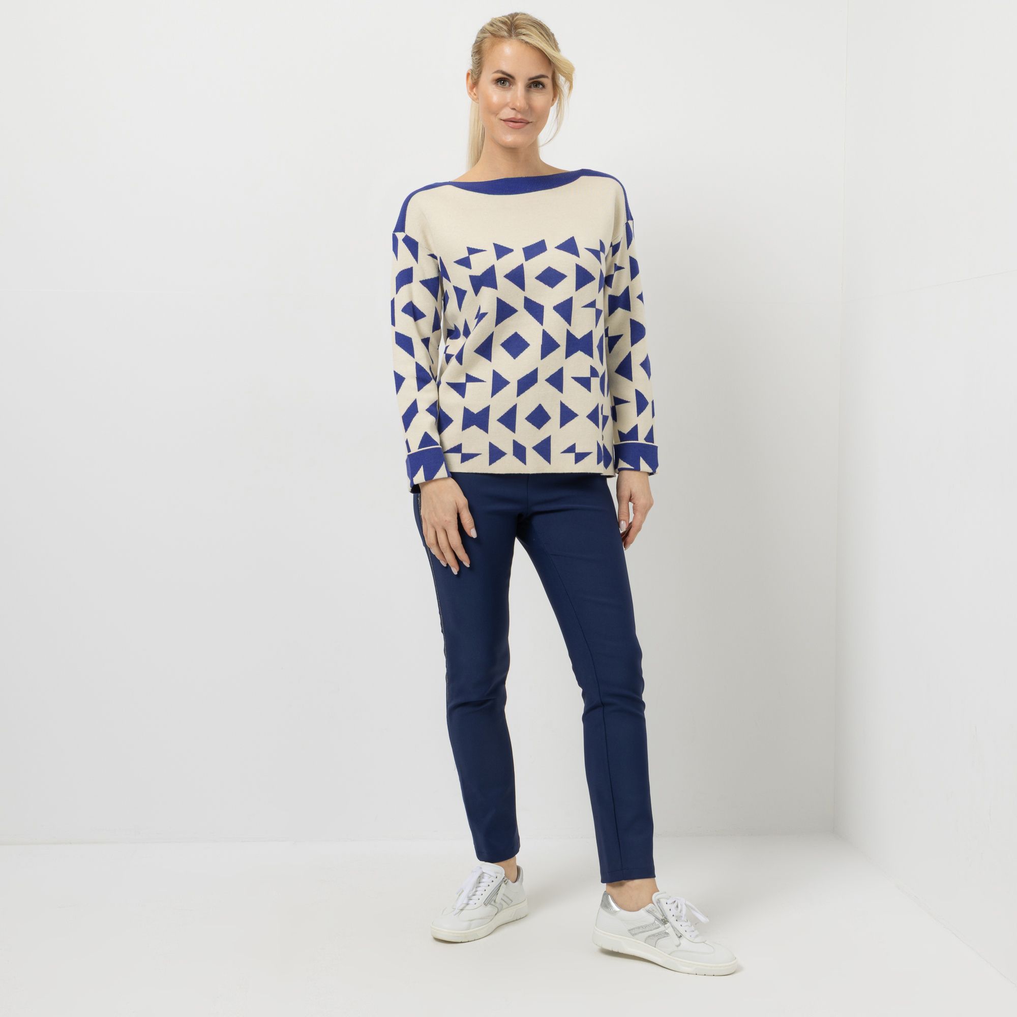 EVA LUTZ Pullover U-Boot-Ausschnitt gemustert figurumspielend