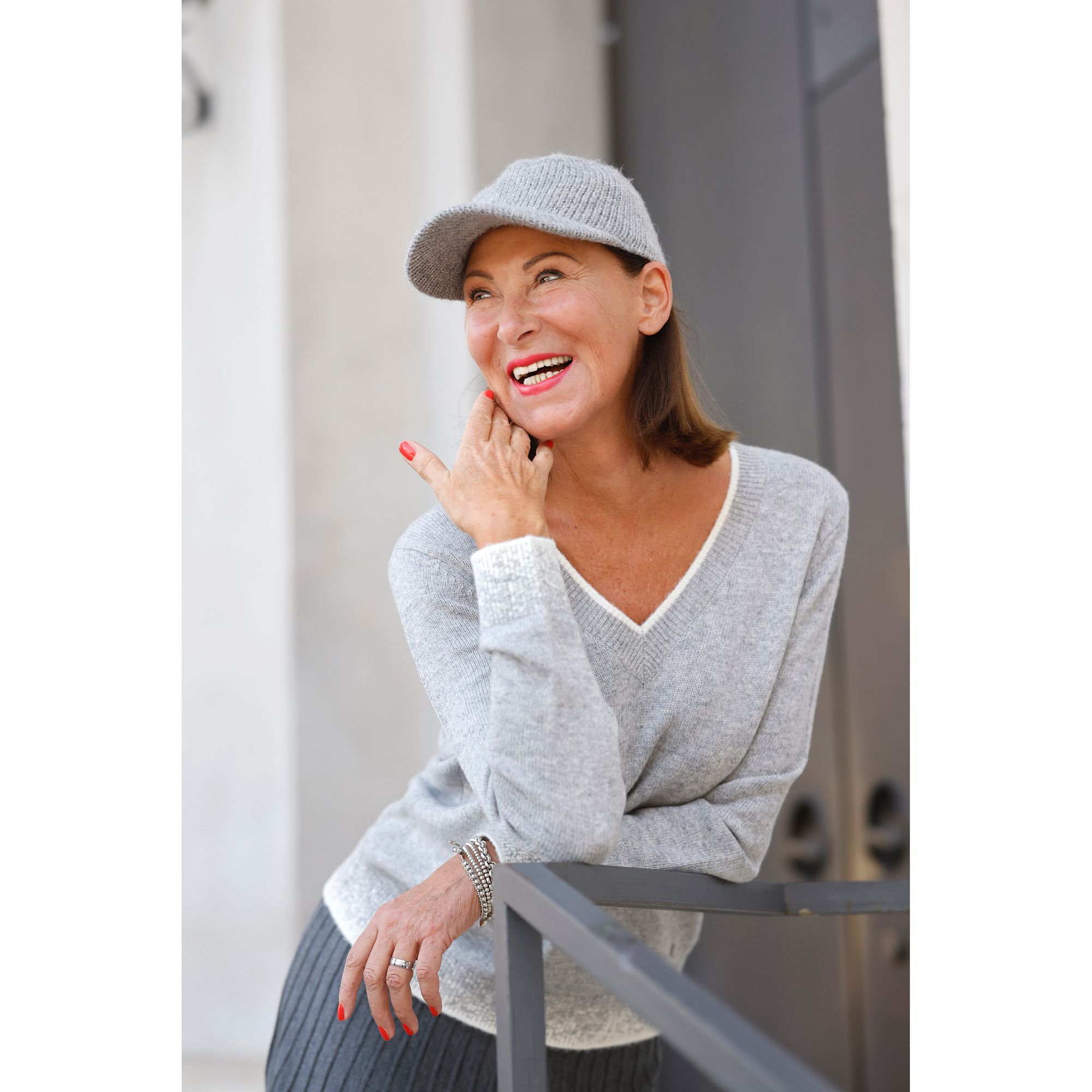 EVA LUTZ Pullover V-Ausschnitt Kaschmir-Anteil figurumspielend