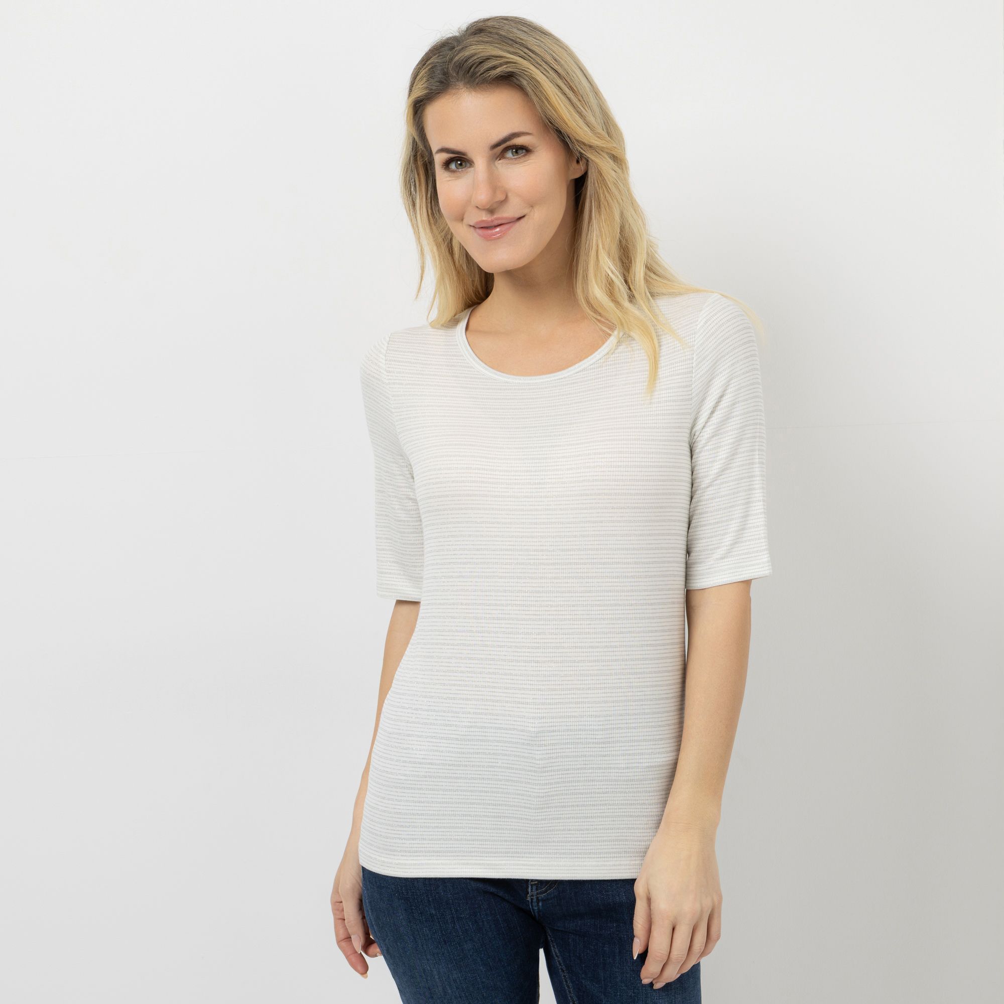 EVA LUTZ Shirt, langer 1/2 Arm Rundhalsausschnitt Effektgarn figurbetont