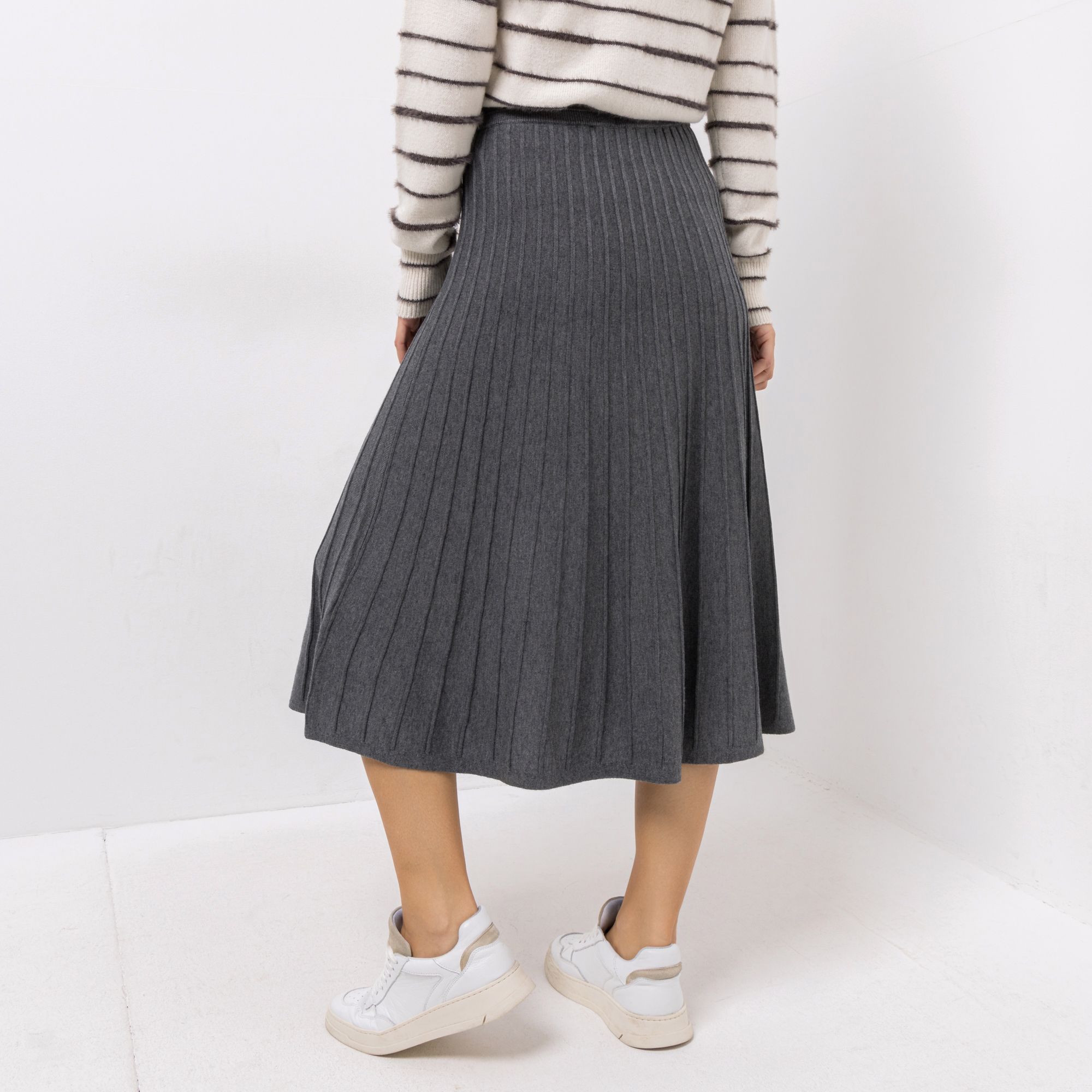 Der wadenlange Strickrock von EVA LUTZ aus Wolle und Viskose bringt dich beschwingt durch den Tag.