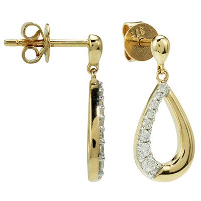 In feinster Bicolor-Optik glänzen diese Ohrhänger aus poliertem 375er Gold. Sie sind mit 16 weißen, pavégefassten Brillanten besetzt und geben Ihrem Profil ein fantastisches Funkeln.