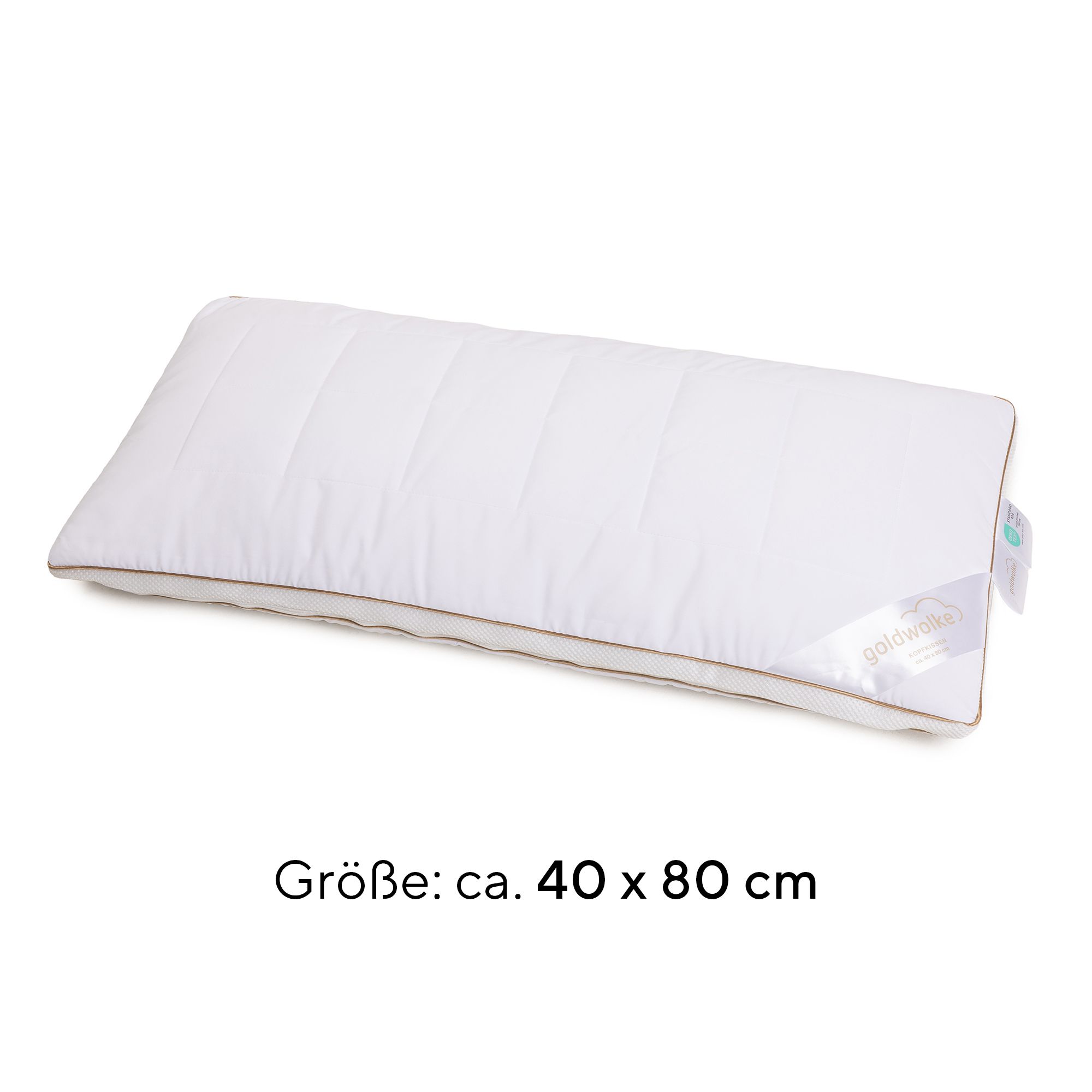 Das GOLDWOLKE Kopfkissen mit "Bionic Tern Down"-Füllung hält dich nachts kuschelig warm. Durch das innovative Nachfüllkonzept kannst du das Kissen individuell an deine Bedürfnisse anpassen – einfach die Füllung über den Reißverschluss regulieren und nicht benötigtes Füllmaterial im Nachfüllbeutel aufbewahren.