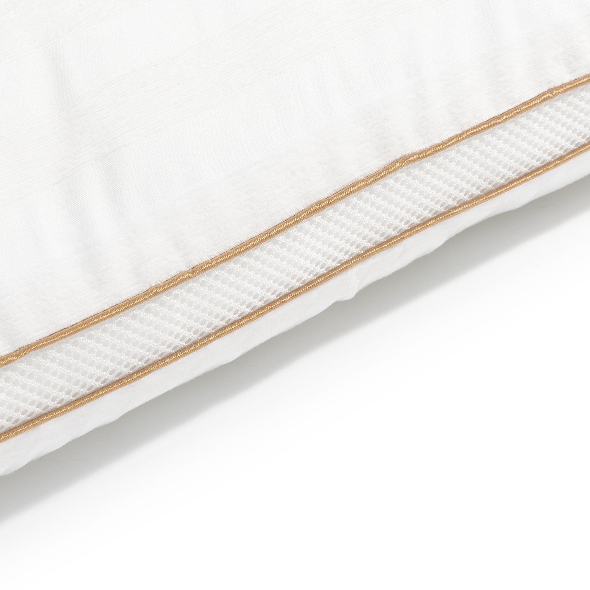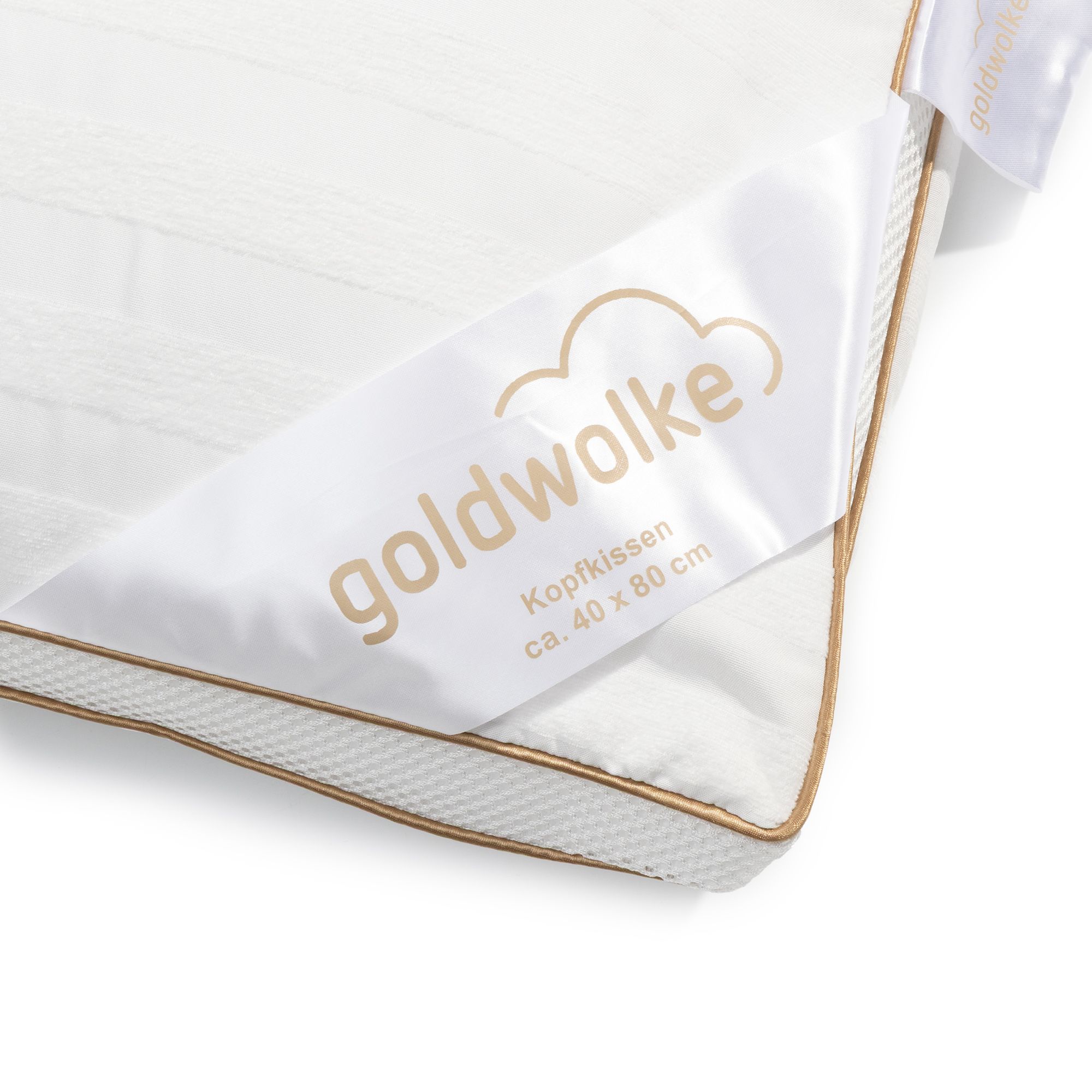 GOLDWOLKE bringt frischen Wind in dein Schlafzimmer – dieses Kissen aus fein gewebtem Chenillestreifen-Jacquard setzt mit goldfarbener Satinpaspelierung stilvolle Akzente und sorgt für einzigartige Behaglichkeit. Unkompliziert anpassbar: Die Füllmenge lässt sich ganz nach deinem Gefühl variieren, dank praktischer Reißverschlüsse am Bezug und der Innenkissenhülle. Ein leerer Nachfüllbeutel ist bereits dabei, sodass Individualität hier ganz groß geschrieben wird.