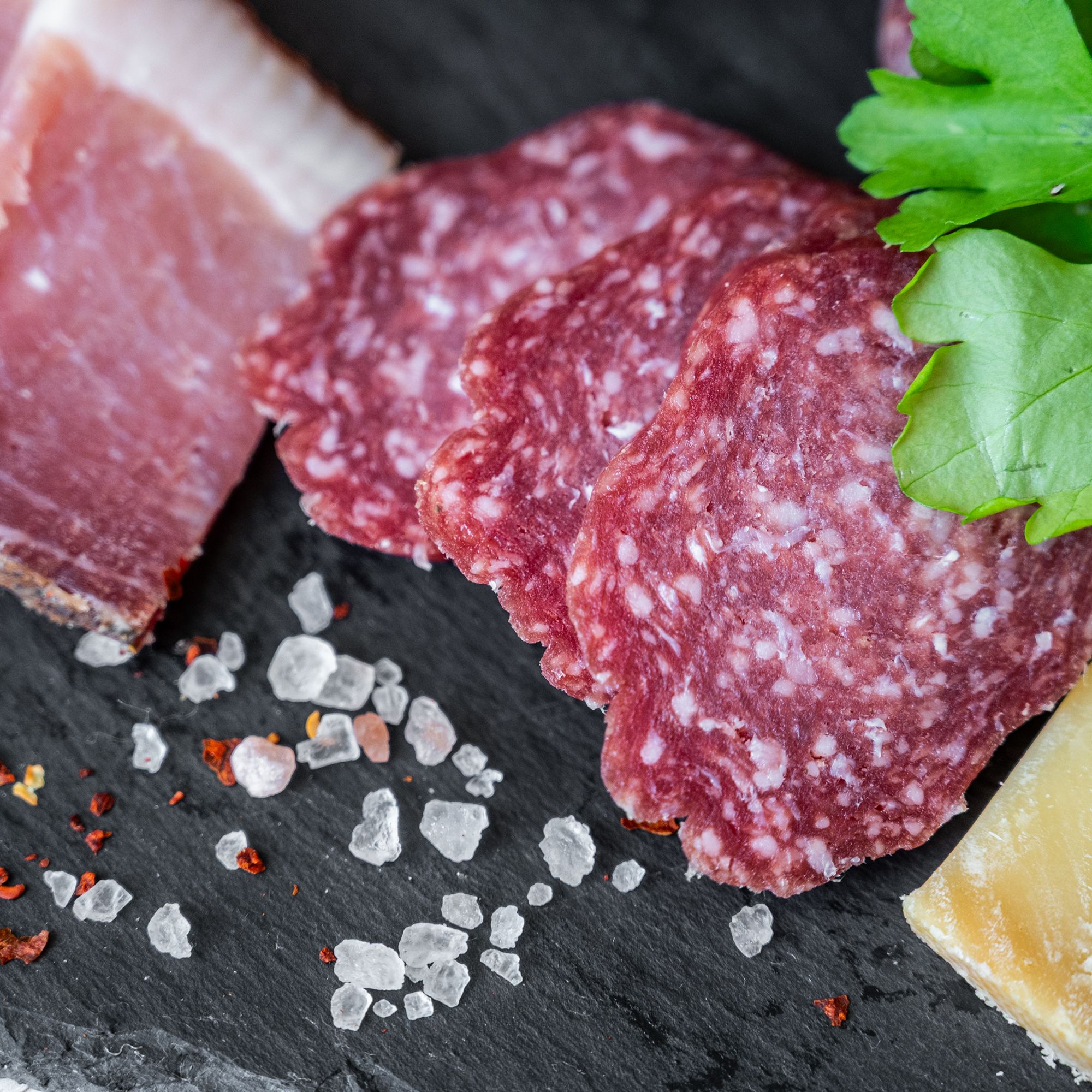 - ohne Gluten und Laktose bei Haussalami, Fleischkäse, Kaminwurzen und Kräuterschinken
