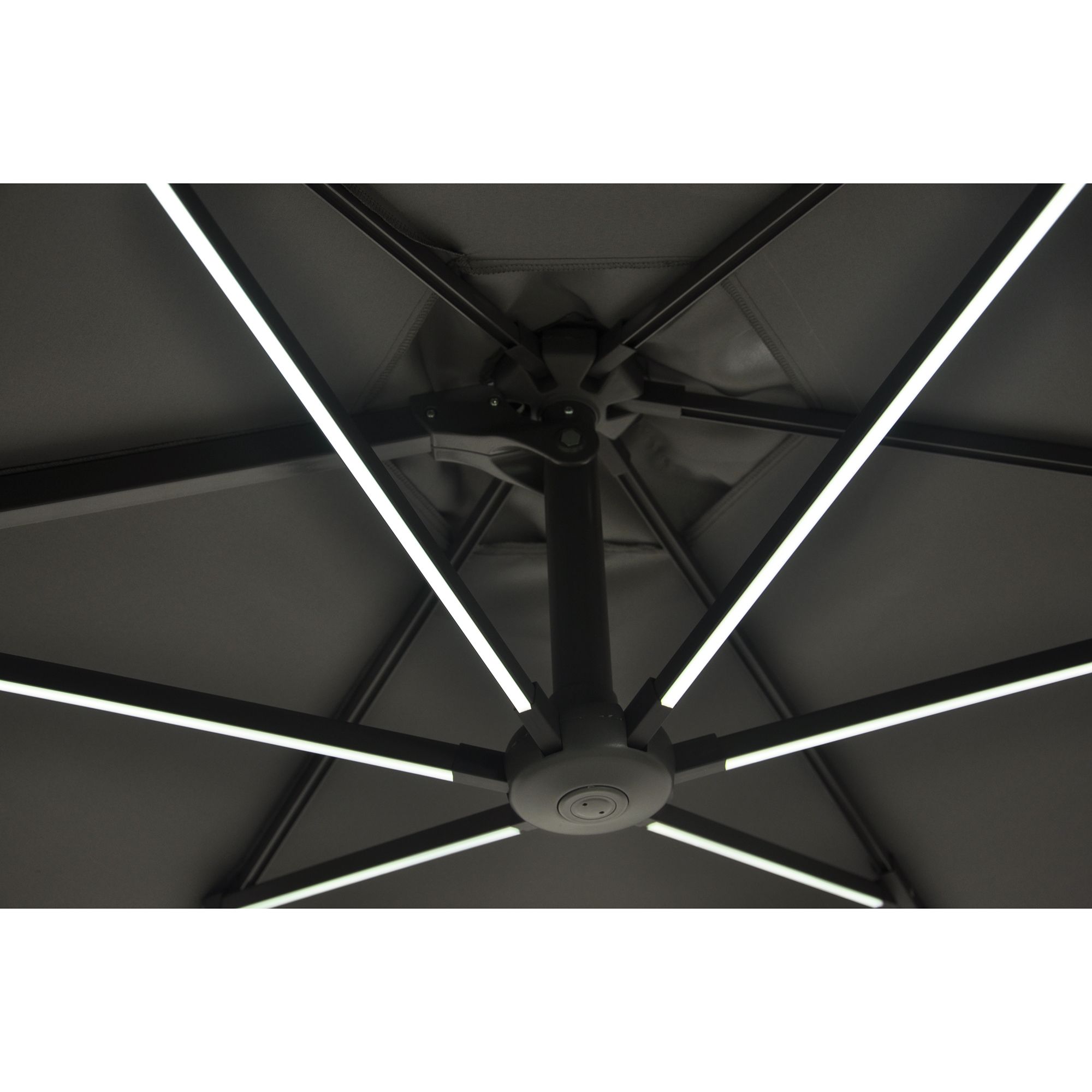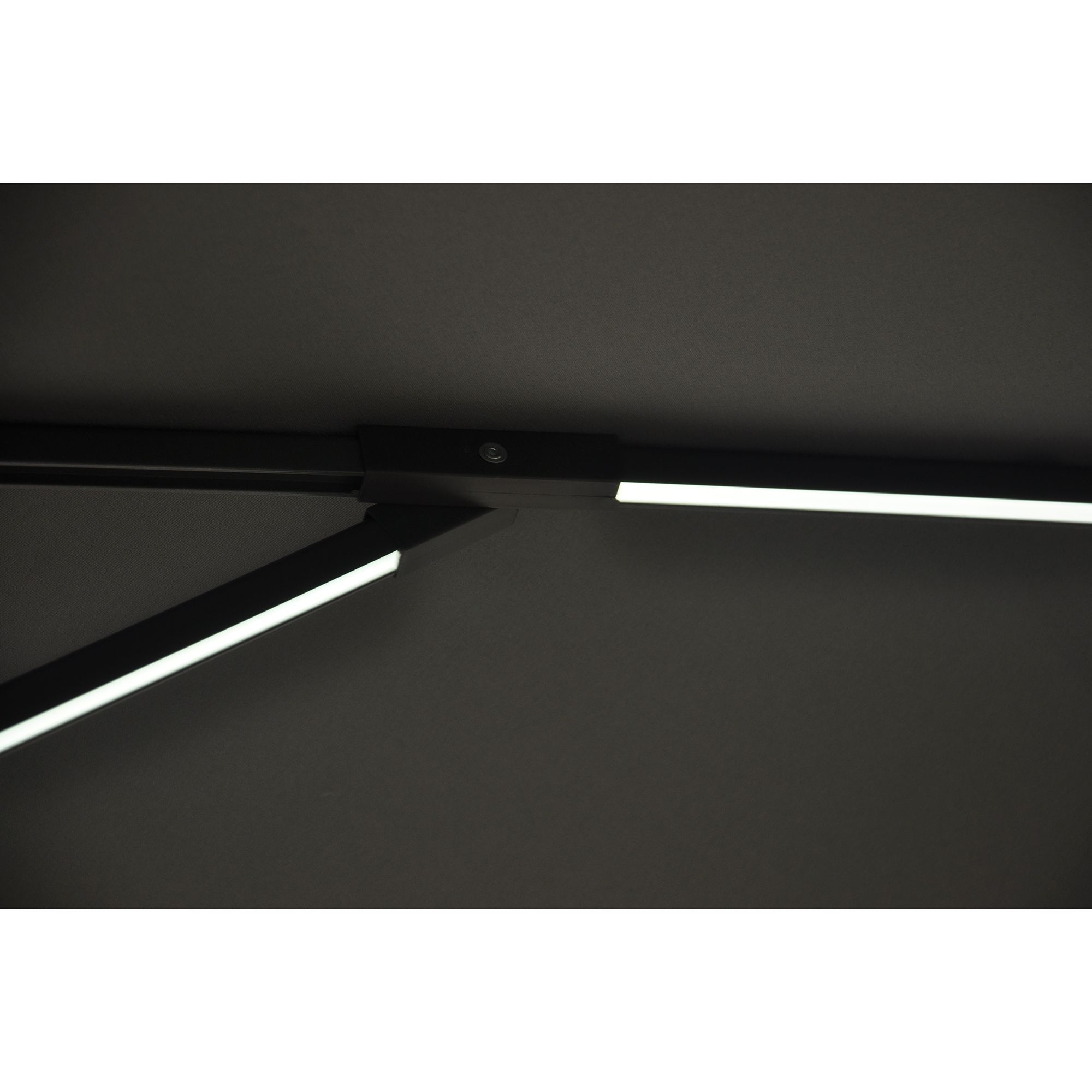 Mit dem Ampelschirm von GREEN LOUNGE wird jeder Außenbereich zur Wohlfühl-Oase: Die integrierten LED-Leuchten sorgen abends für stimmungsvolles Licht, während das leistungsstarke Solarpanel tagsüber Energie sammelt – so bleibt der Komfort auch nach Sonnenuntergang erhalten. Das hochwertige Polyester-Schirmdach in Dunkelgrau und das elegante Gestell fügen sich harmonisch in Garten, Terrasse oder Balkon ein und bieten zuverlässigen UV80+ Schutz.