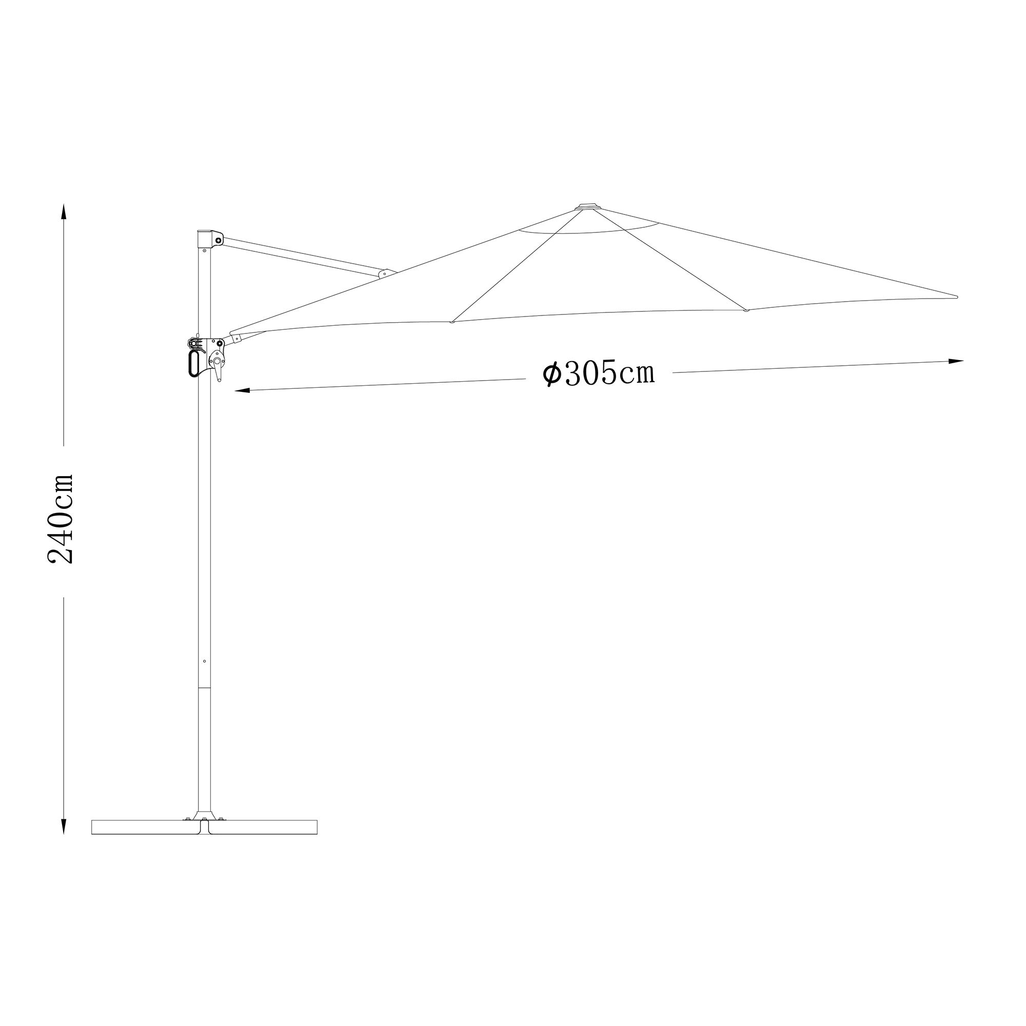 - Schirmgröße: ca. 3,1 m Durchmesser, Höhe: ca. 2,45 m