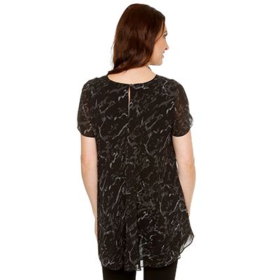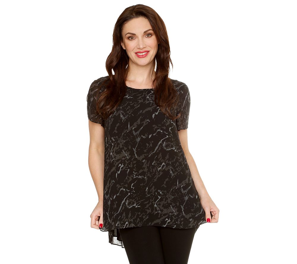 Auf eine Feier eingeladen, aber keine Zeit für aufwändiges Styling? Dank der Halbarm-Bluse von H BY HALSTON geht es ganz schnell mit der Eleganz. Das schwarze Crinkle-Chiffon sieht einfach immer apart und gut gestylt aus. Kombinieren Sie Jeans oder Leggings dazu – fertig ist Ihr lässiges Abend-Outfit.
