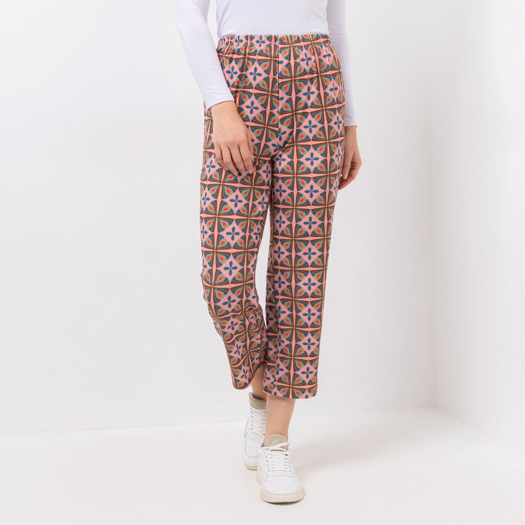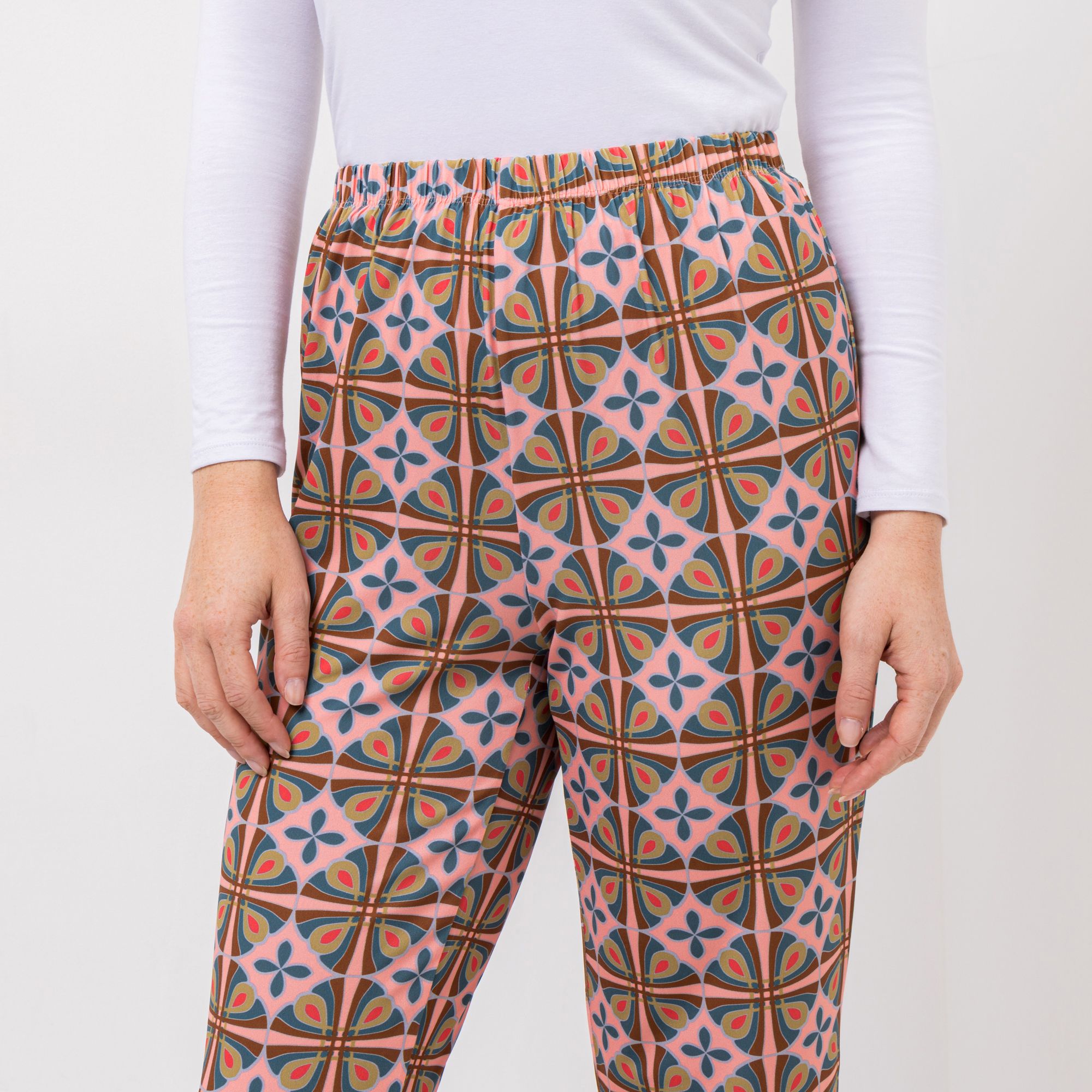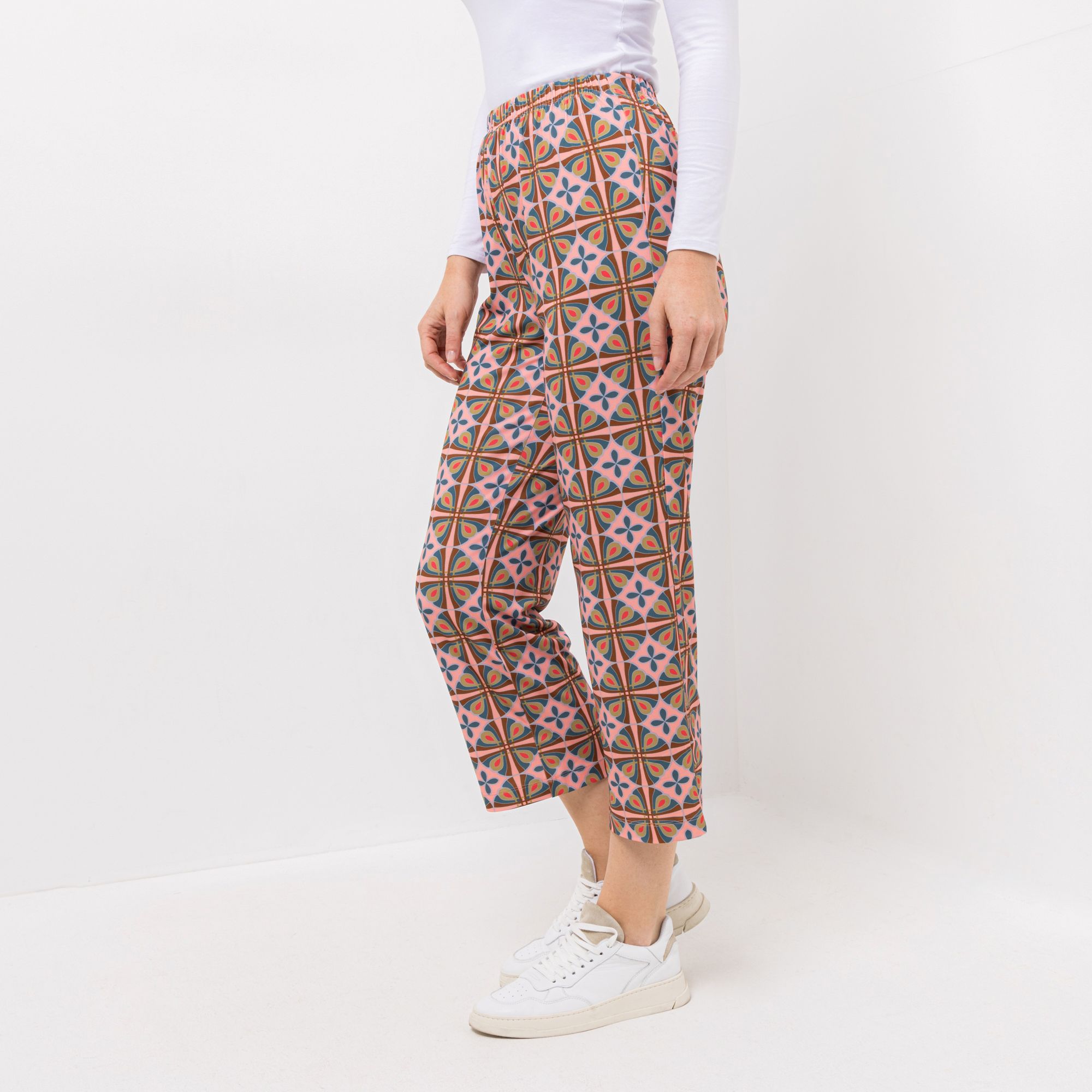 Die feminine Art zu chillen: Die IN-PRINT Hose mit geradem Bein und 7/8-Länge ist aus Jersey in Altrosa gemacht und komplett bedruckt.