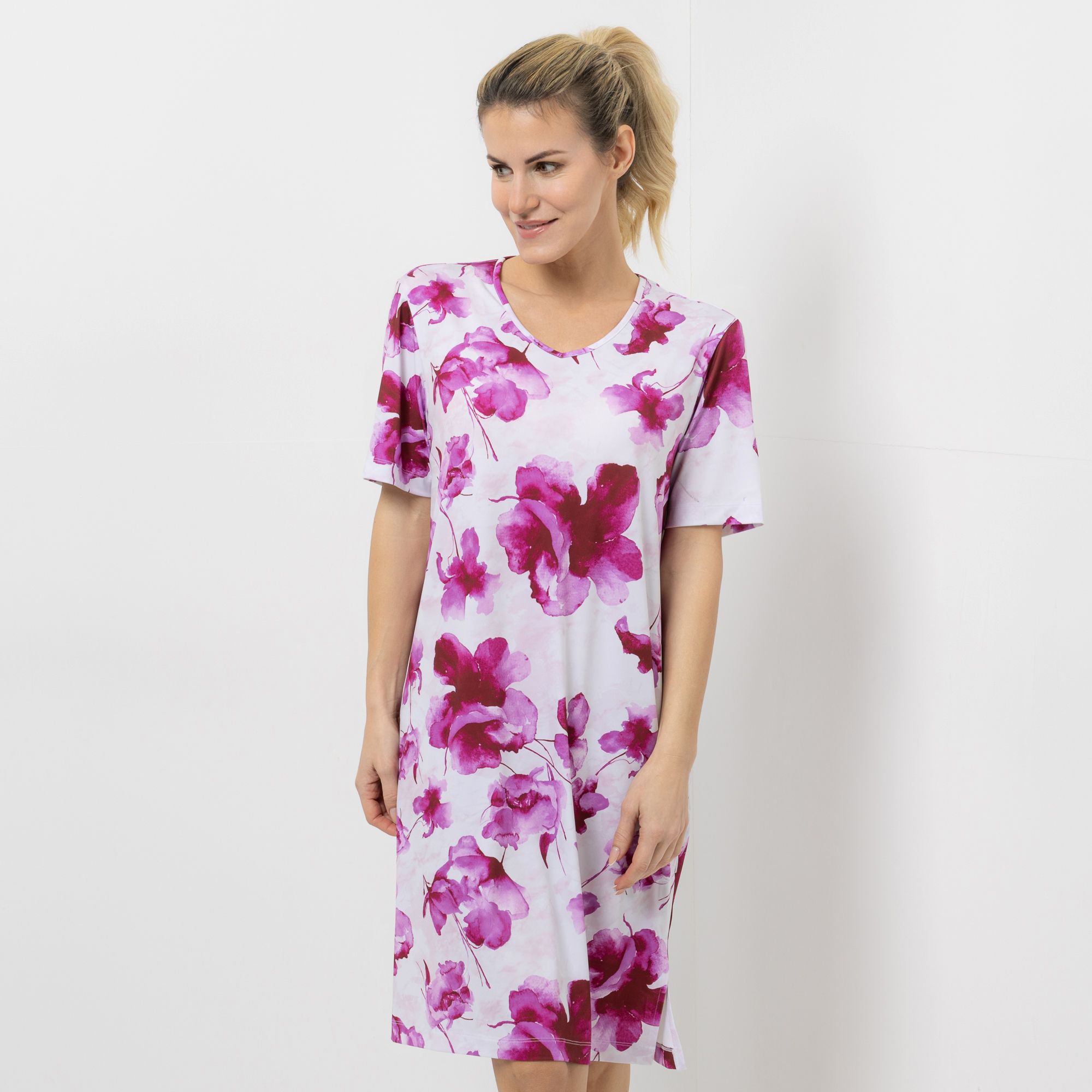 IN-PRINT Kleid, 1/2-Arm V-Ausschnitt Seitenschlitze